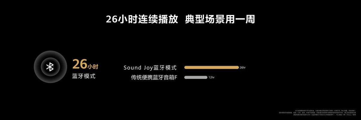 除了超高的颜值,在日常使用便携智能音箱时,相信大家都有听歌听到一半音箱突然关机,电池电量耗尽的糟糕体验,而华为Sound Joy搭载了8800mAh大电池,在蓝牙连接的情况下能够实现26小时长续航,基于华为对于续航的调教,在AI模式下可播放16小时,而AI待机状态下电量最长可达36小时。