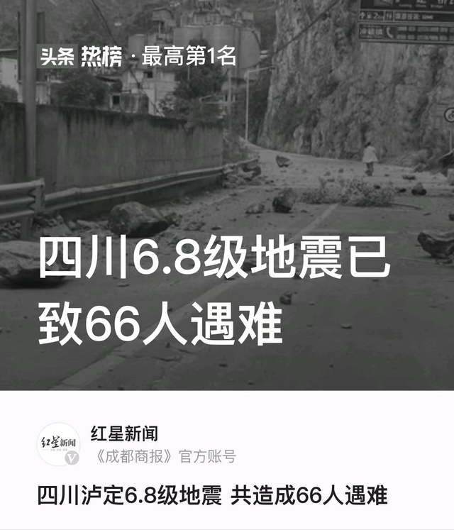四川泸定此次6.8级地震共造成66人遇难,其中甘孜州遇难38人,雅安遇难28人,还有15人失联。
