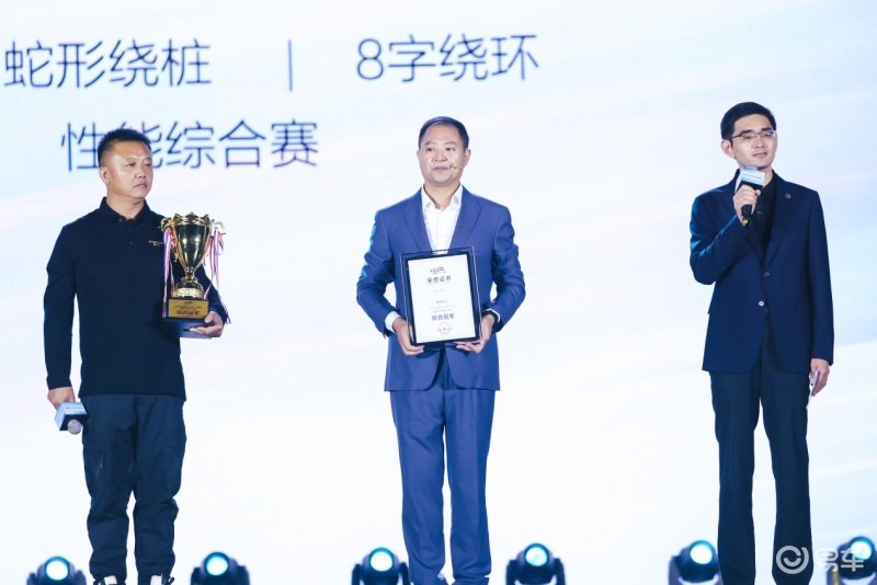 【中汽信科王亚飞部长为星途凌云产品总监杜文建、CCPC冠军车手陶鹏飞颁奖(从右至左)】