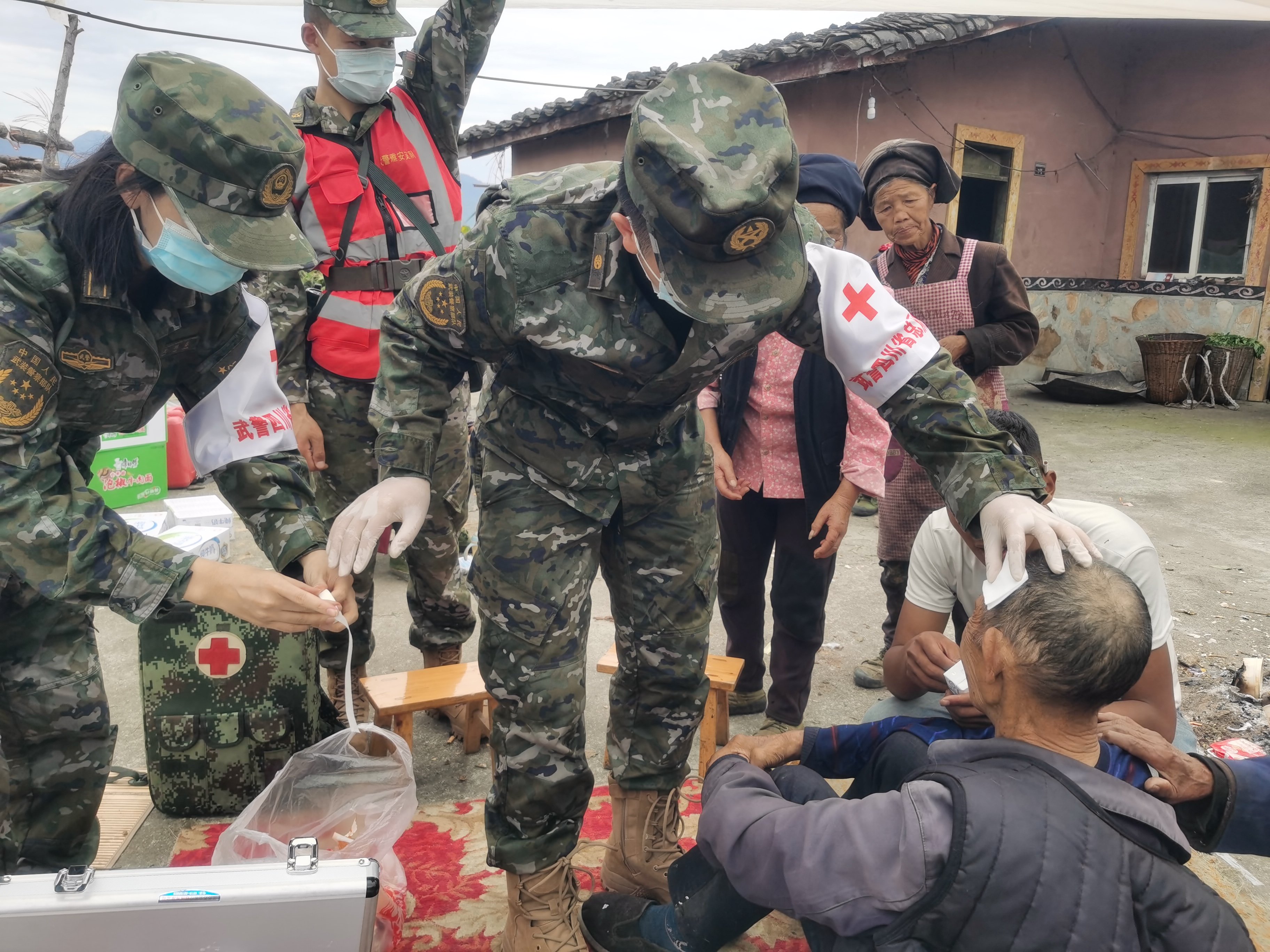 9月6日,武警四川总队医院医疗队在泸定县磨西镇救治伤员。