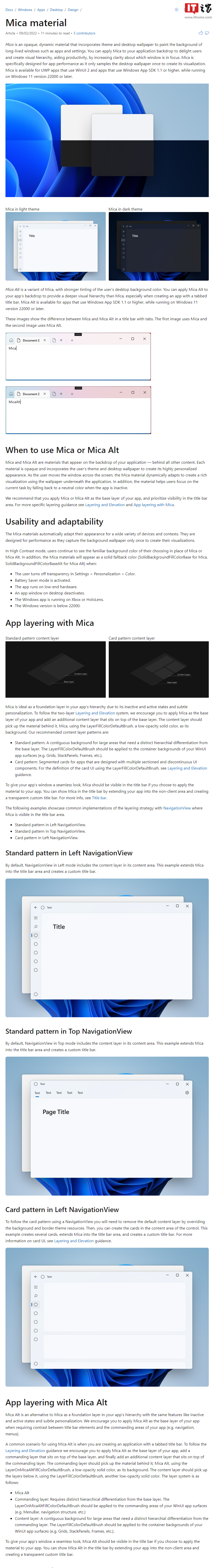 IT之家获悉,在要求方面,微软表示新的 Mica Alt 材料可用于“使用 Windows App SDK 1.1 或更高版本的应用程序”。