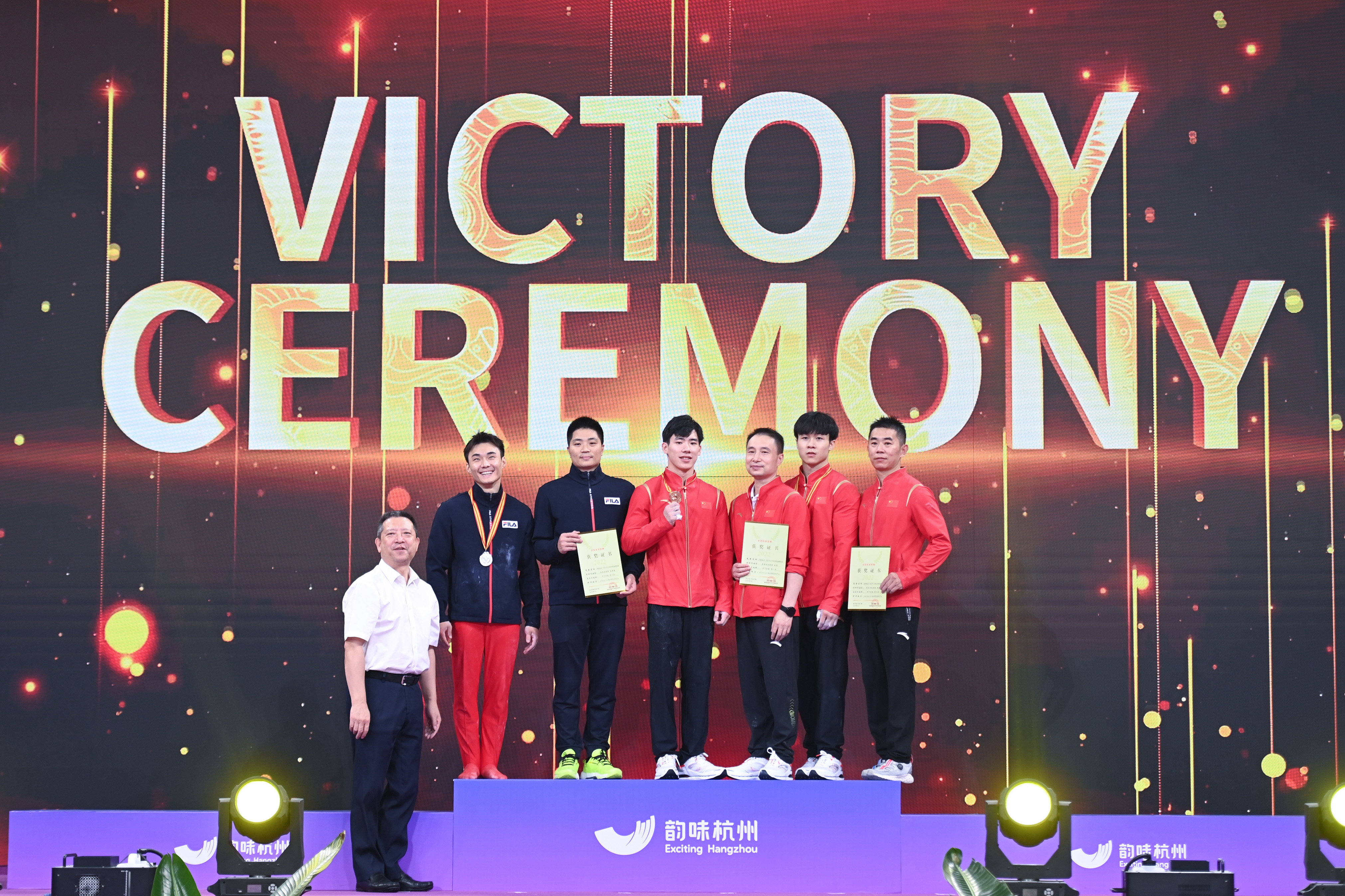 9月6日,冠军张博恒(右四)在颁奖仪式上。新华社记者 黄宗治 摄
