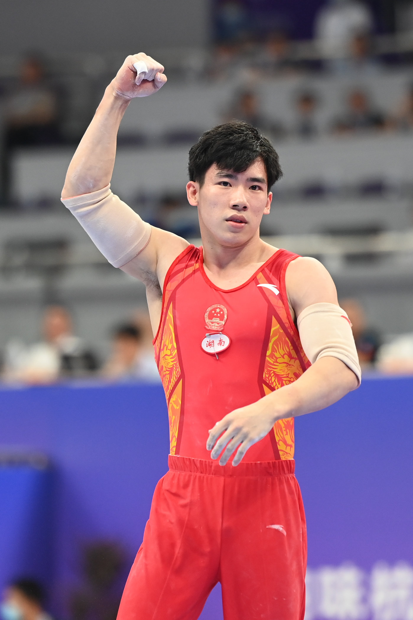 当日,在浙江杭州举行的“韵味杭州”2022年全国体操锦标赛男子个人全能决赛中,湖南队选手张博恒获得冠军。
