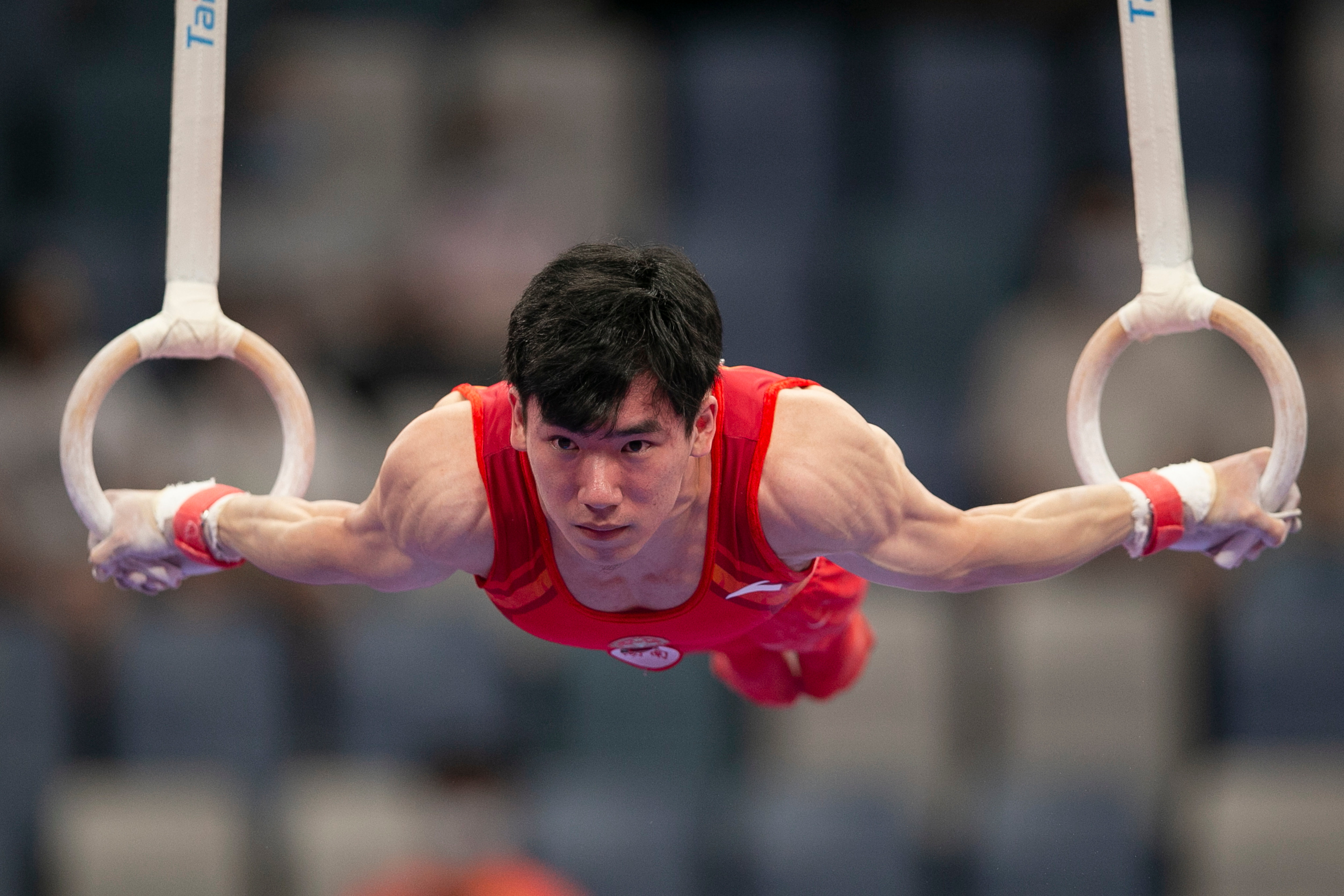 9月6日,张博恒在吊环比赛中。新华社记者 许雅楠 摄