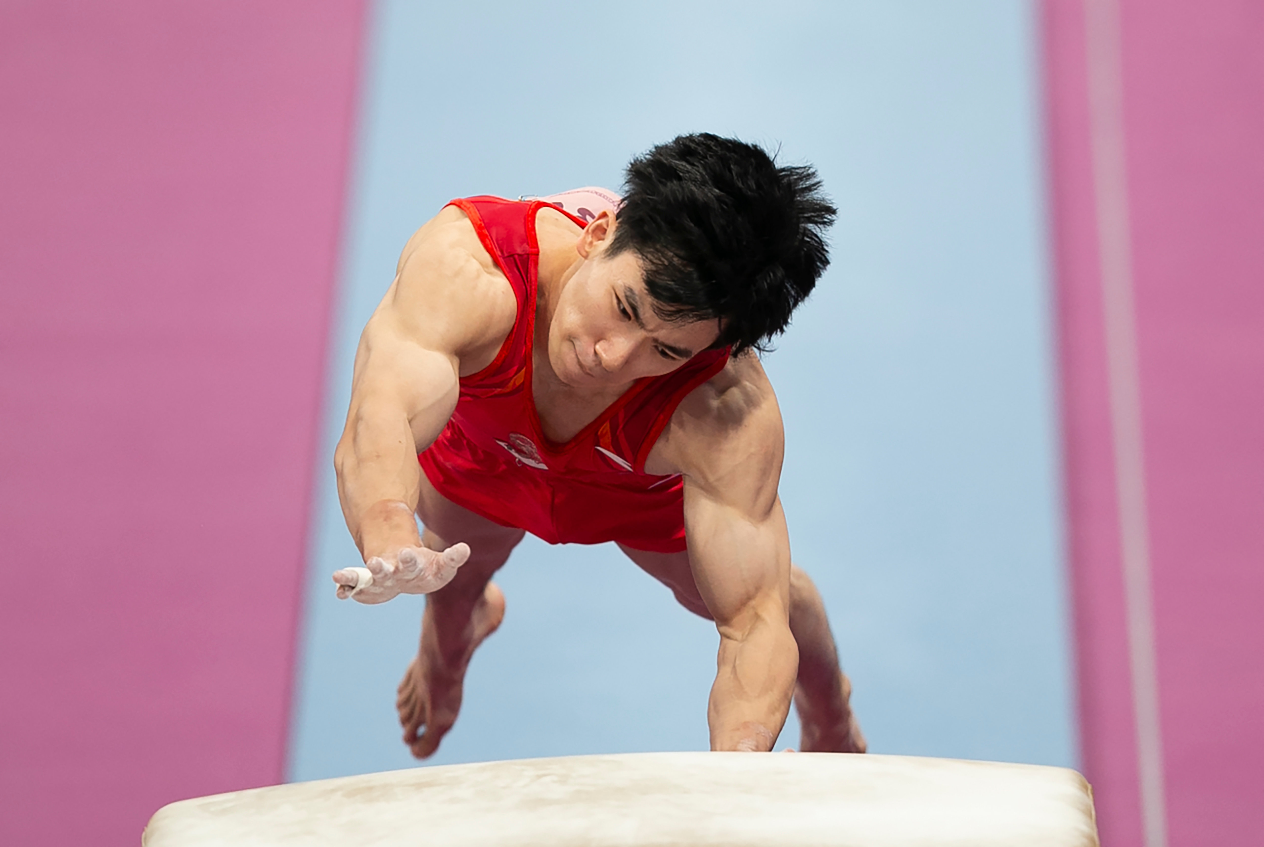 9月6日,张博恒在跳马比赛中。新华社记者 许雅楠 摄