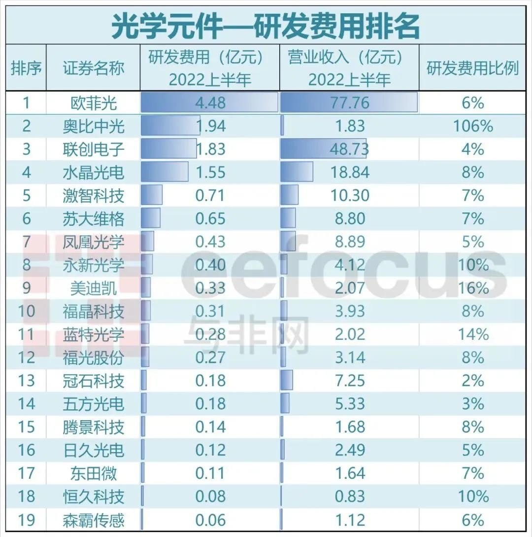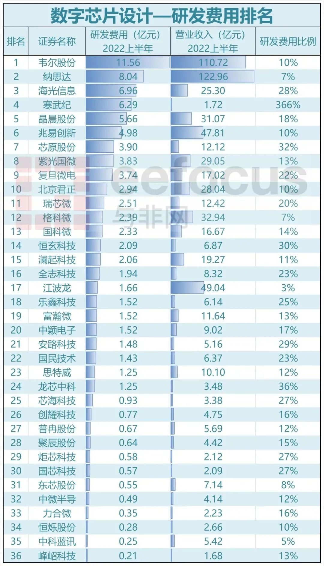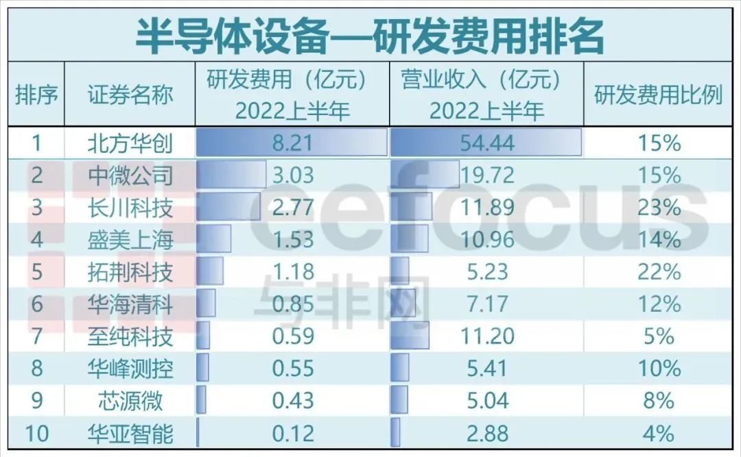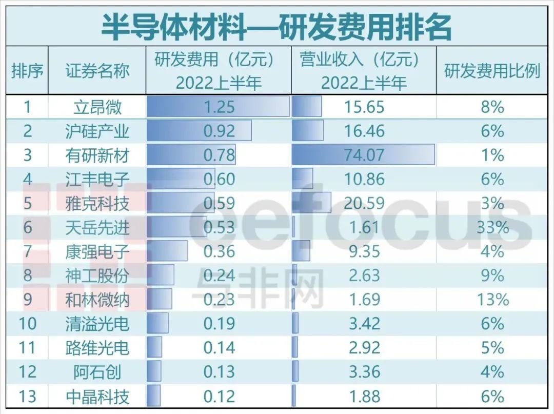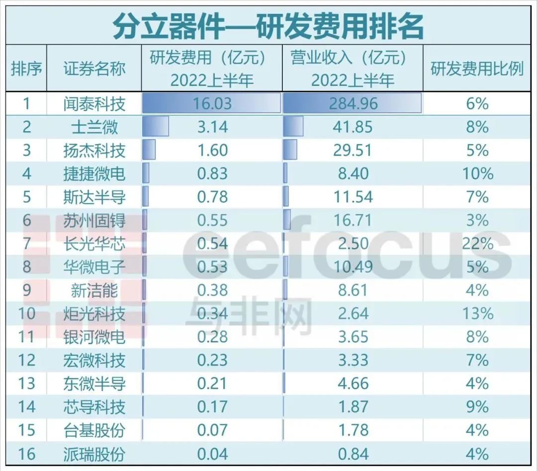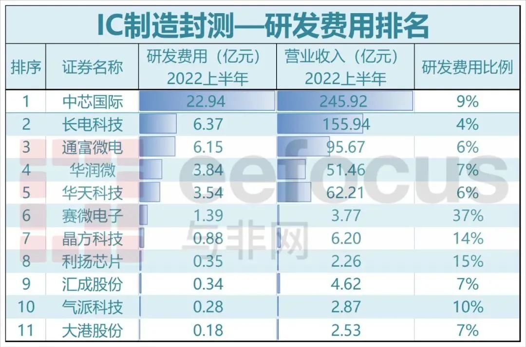 2022年上半年A股半导体公司研发费用排名