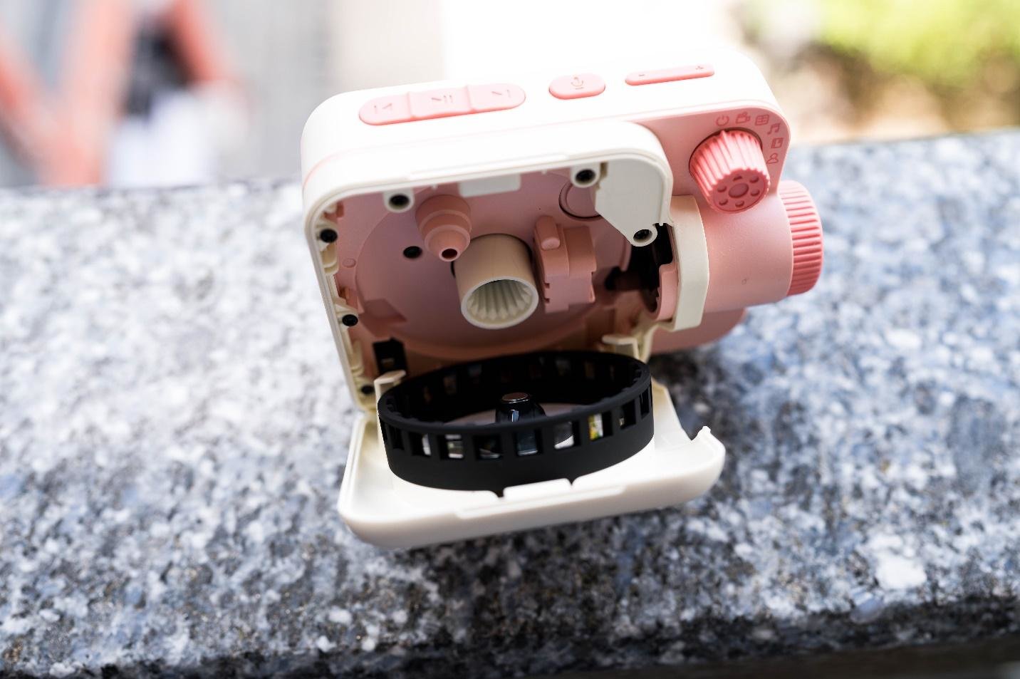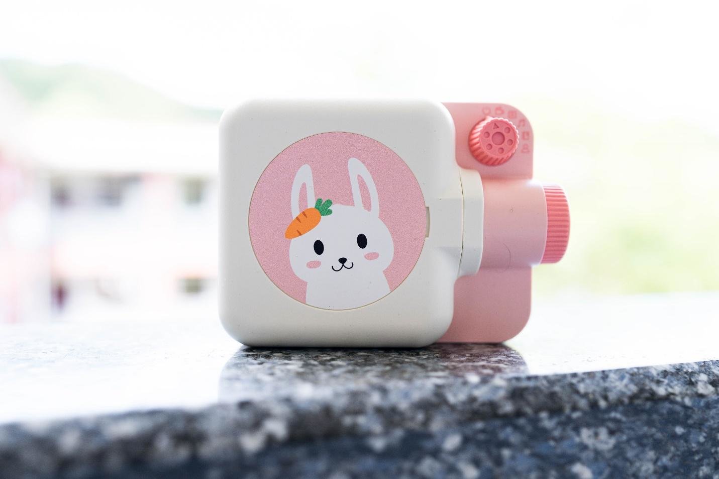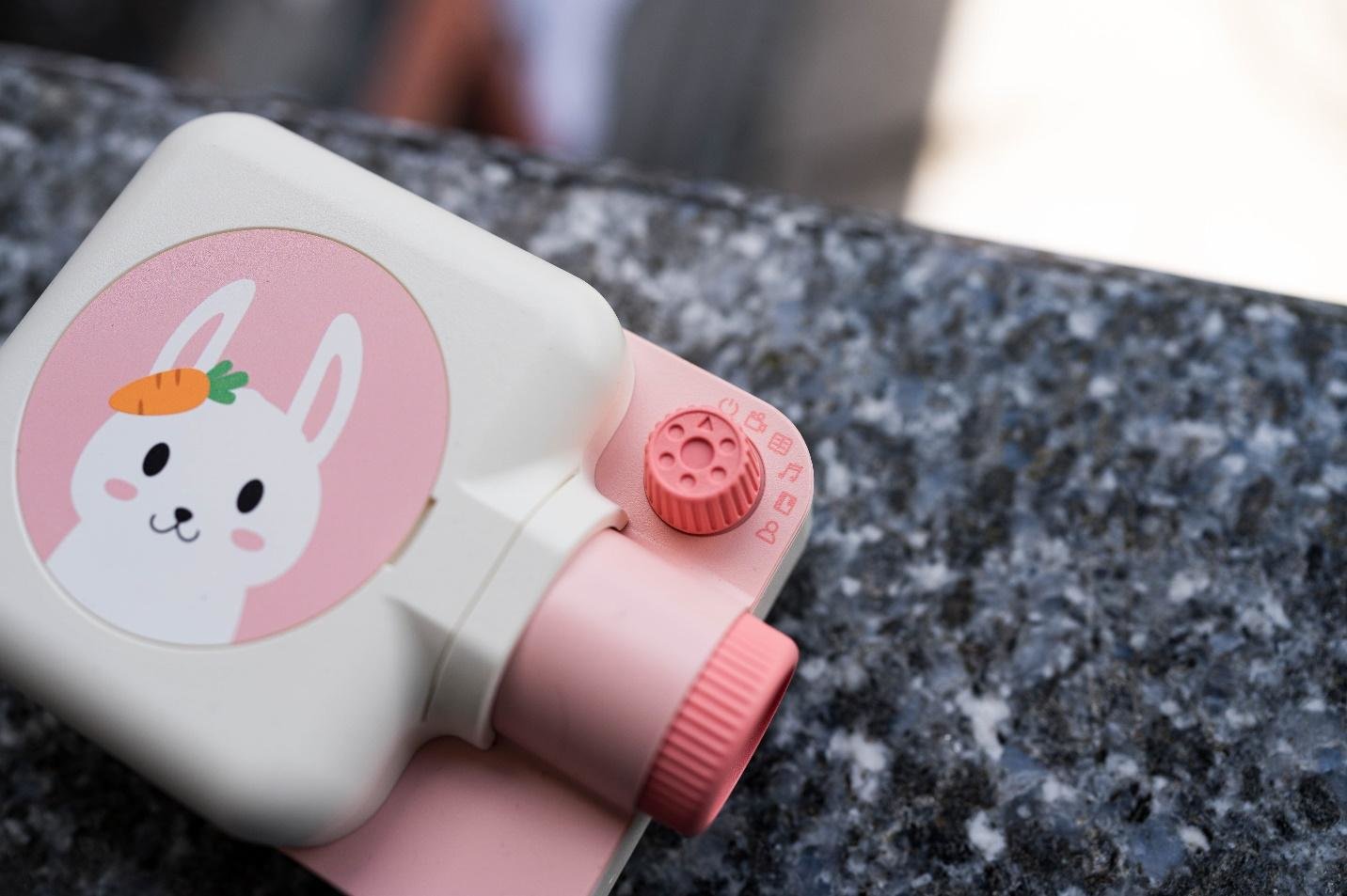 整体外形比较设计比较像一个电影放映机,刚开箱孩子就一把抢过去玩了起来,家里孩子4岁,对各类电子产品都玩得很溜了,不用教,自己一看就知道怎么玩了,粉色也是她的最爱,
