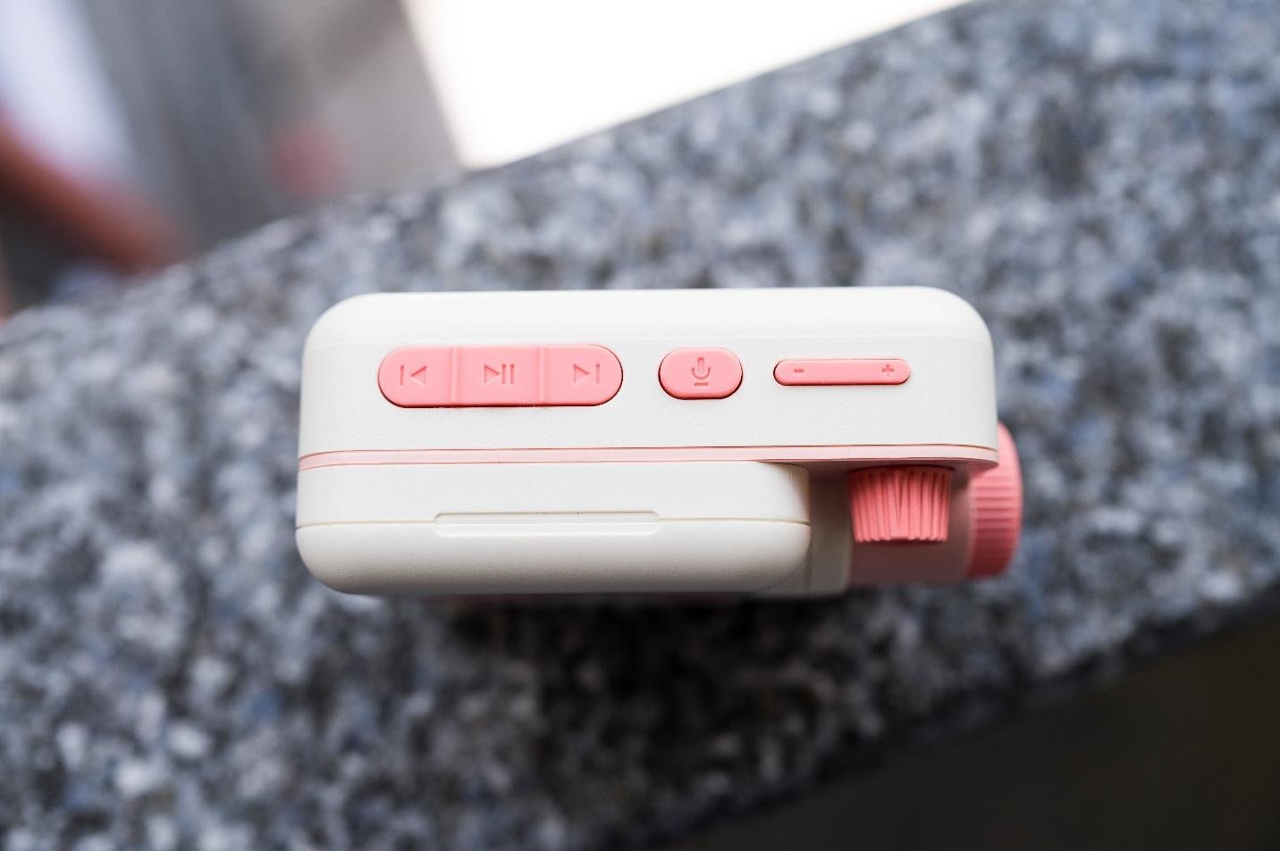 控制按钮设计在了顶部,播放/暂停、切换、语音识别、±音量控制,十分像我们以前用的随身听的设计,简单直观。