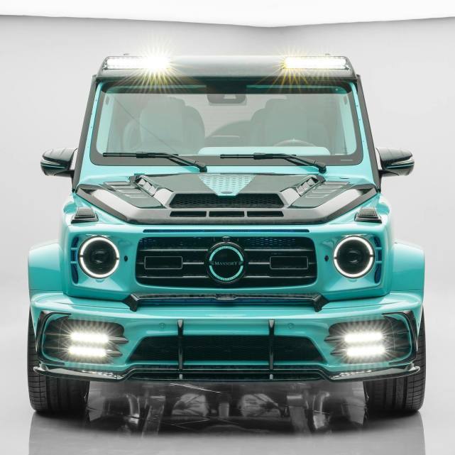 外观方面,车头引擎盖带进气口、前唇、日行灯罩、前保险杠、后视镜罩、侧裙、后置扩散器、后车顶扰流、备胎罩等,均采用了MANSORY独家昂贵的航空级锻造碳纤维,成就“奔驰大G”稀世珍品。也因为大量碳纤维的应用,使得整车更坚固更轻量,二氧化碳排放量(合计)只有312克/公里、综合燃油油耗13.6升/100公里。