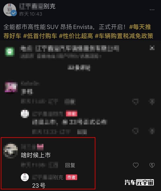 汽车元宇宙了解到,上汽通用别克昂扬Envista将于9月23日上市。新车定位介于昂科拉GX和昂科威S之间,提供普通版与GS版车型,前脸采用分体式灯组,搭配全新“三色盾”品牌标识,内饰装配双联屏,全系提供1.5T+CVT的动力组合,WLTC综合油耗为6.5L/100km。新车预售价格为15万元起,正式上市后会与卡罗拉锐放、大众途岳、日产逍客等车型竞争。