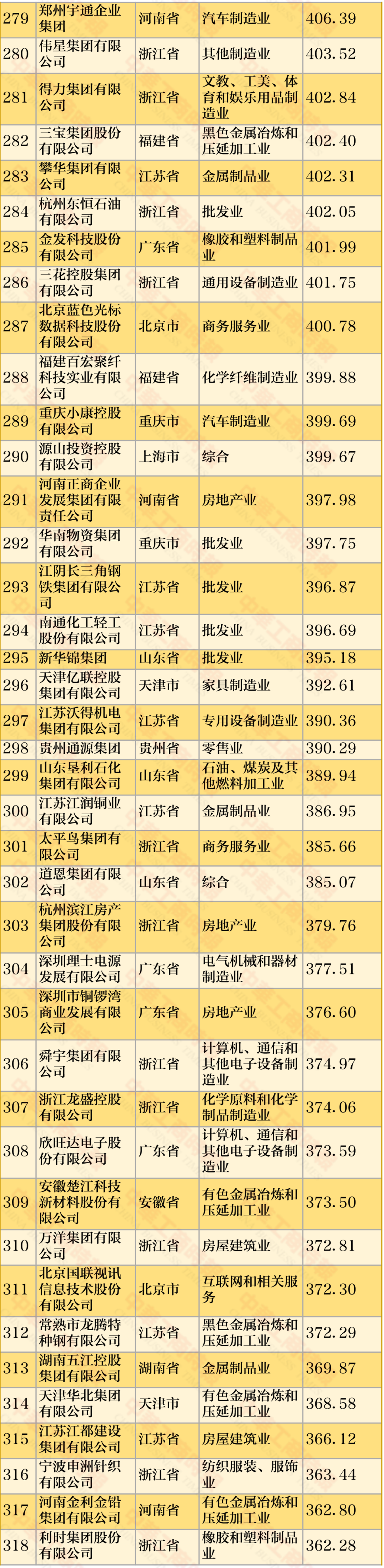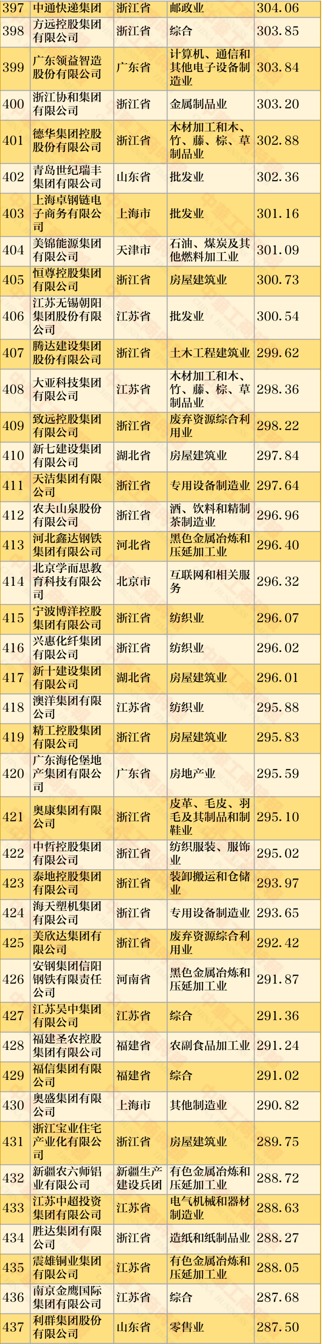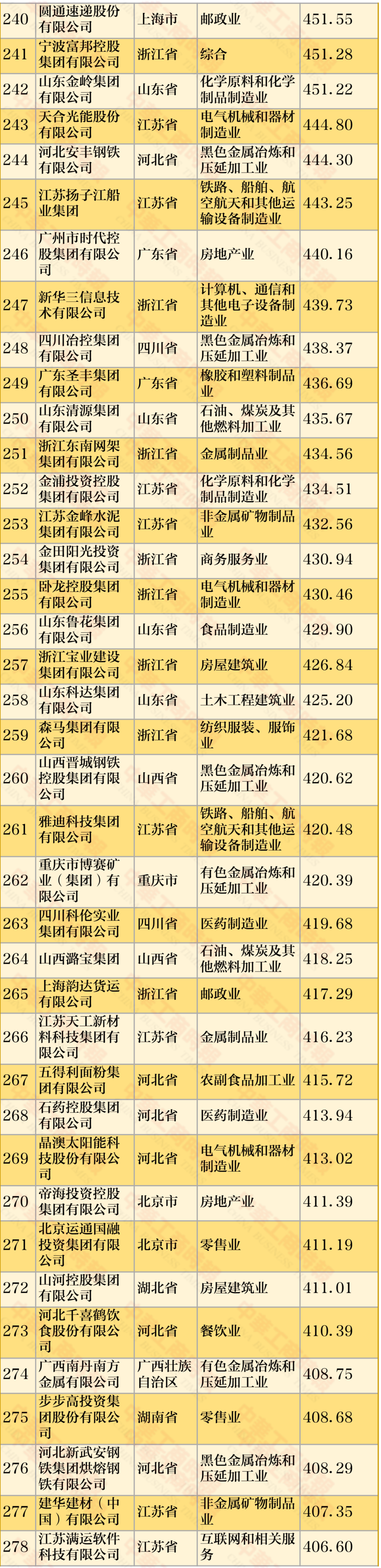 据悉,今年是全国工商联连续组织开展的第24次上规模民营企业调研,共有8602家年营业收入5亿元以上的企业参加。民营企业500强入围门槛达263.67亿元,比上年增加28.66亿元;制造业民营企业500强入围门槛达125.72亿元,比上年增加25.21亿元;服务业民营企业100强入围门槛达301.16亿元,比上年减少21.61亿元。