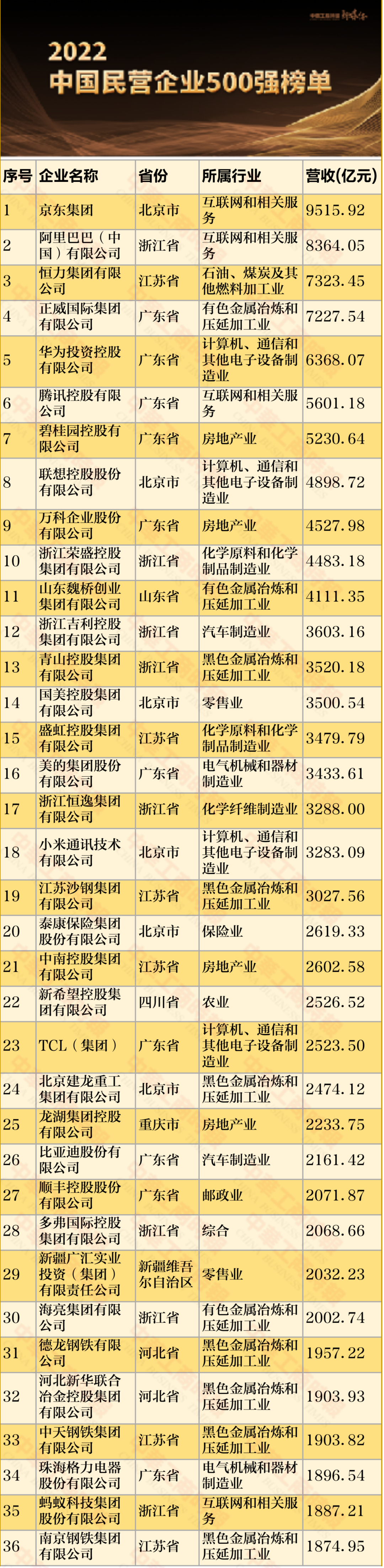 9月7日,全国工商联发布2022中国民营企业500强榜单,500强的营业收入总额38.32万亿元,增长9.13%;税后净利润1.73万亿元,下降12.28%。其中,山东东明石化集团以年营收1286.12亿元人民币入选榜单,居第64位,较2021年的第74位上升了10个位次。