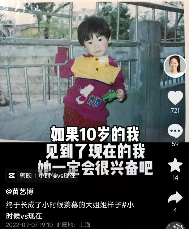 9月7日晚,郑恺小姨子苗艺博在个人社交平台分享了一组自己的成长照,这次她还将10岁时期的童年旧照大方公开,给足粉丝惊喜。苗艺博还开心写道:“终于长成了小时候羡慕的大姐姐”。