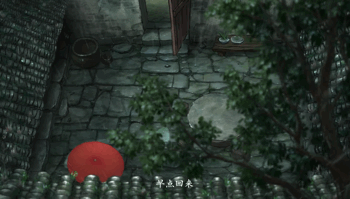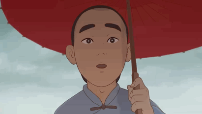 小男孩在妈妈做饭的时候,看到了红豆。他端详了一阵,好像想到了什么、得到了什么宝贝似的,急匆匆地打上雨伞,去找他两小无猜的好朋友六娘。