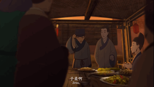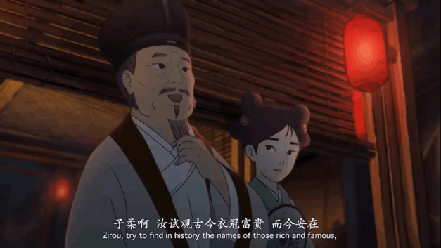 不过,第一遍欣赏时,在内容上,还是让我感到有些意外,因为动漫讲述的并不是诗词作者创作这首诗时的故事,而是将诗词里表达的一些亘古不变的触动人心的内涵抽离出来,再用不同于诗词创作年代的新的历史人物故事去讲述。这便是跨越时空的共鸣与传承。