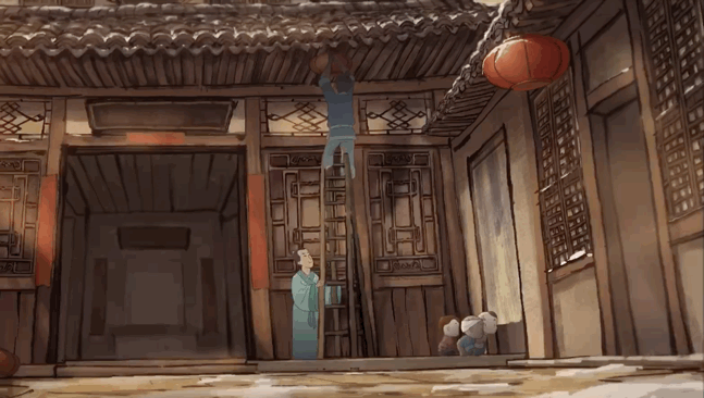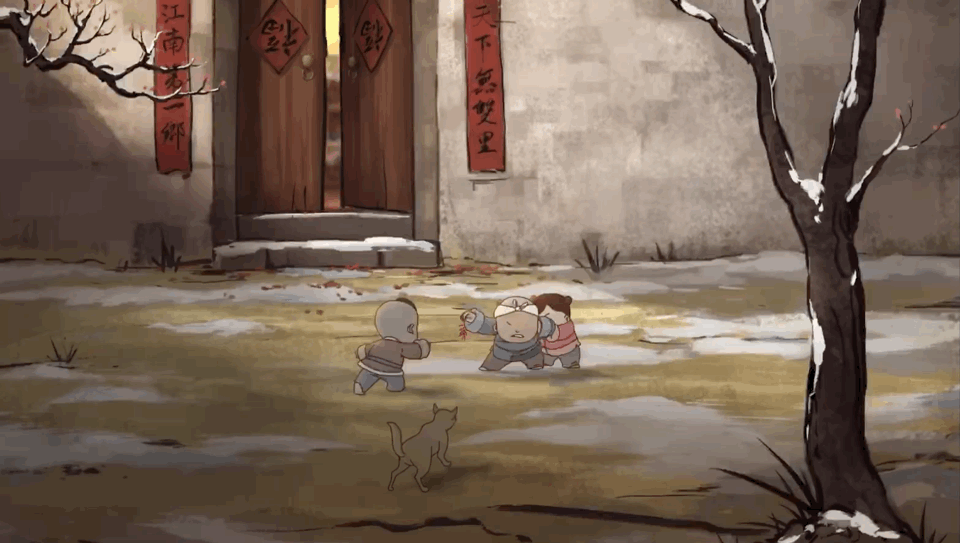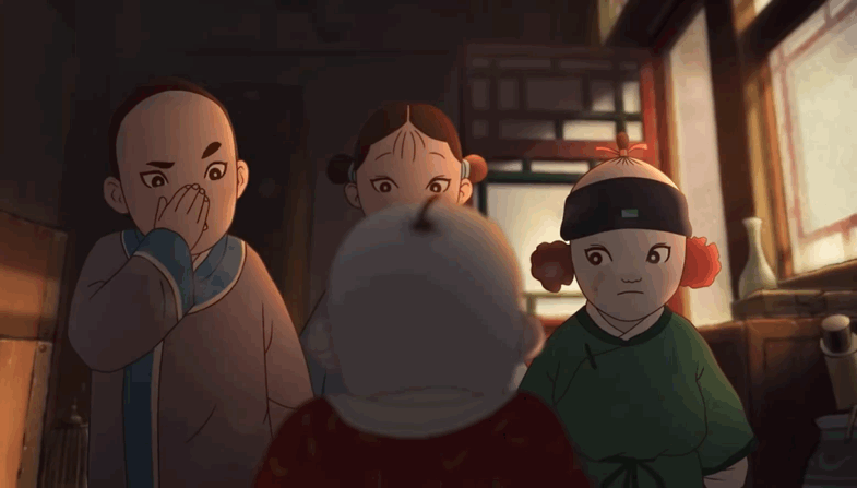 但是,在这集动漫中,故事却从京城皇宫高墙之外的一座四合院内,四位幼童一起玩捉迷藏(片子中叫“扎盲盲”,是清代时古人对“捉迷藏”游戏的称呼),不小心翻出一件非常破旧的小棉袄开始。