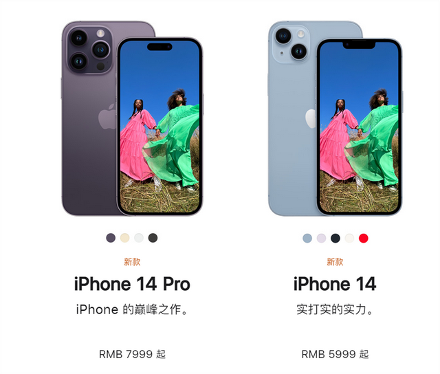 iPhone 14:128GB 版售价 5999 元,256GB 版售价 6899 元,512GB 版售价 8699 元。