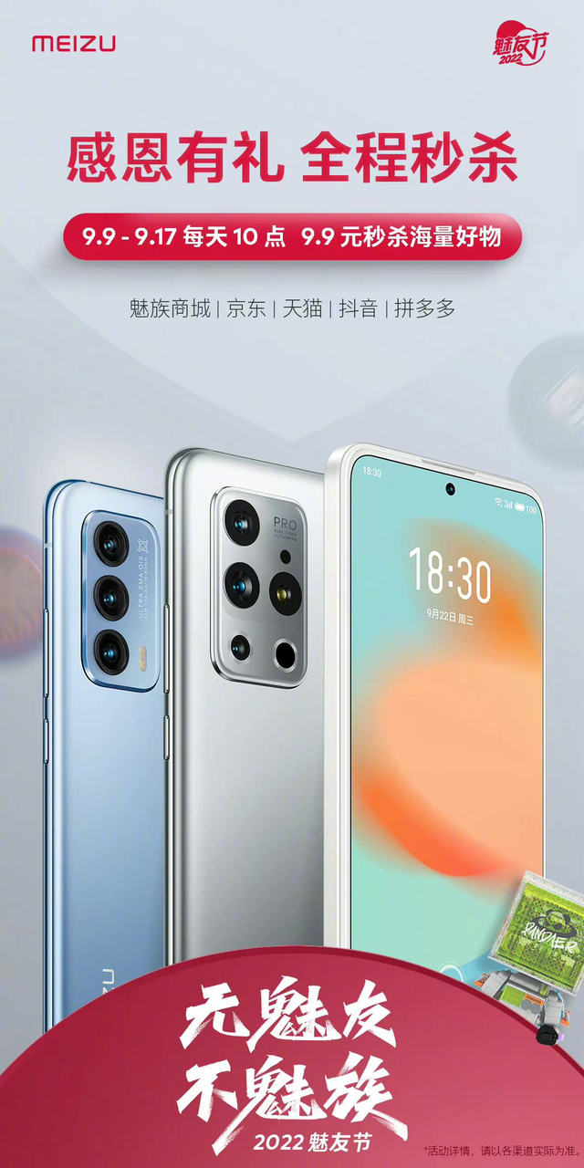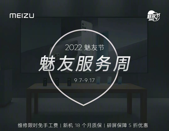当下,魅族启动了2022魅友节,在9月7日到9月17日期间,用户可享受「维修限时免手工费」、「新机18个月质保」、「碎屏保障5折优惠」等售后服务,活动期间还有多项福利放出,有兴趣的朋友可以关注一下!