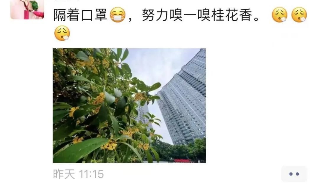 从小区楼下,香到朋友圈以及各大群,大家不约而同晒出自己够得着的那一枝桂花。
