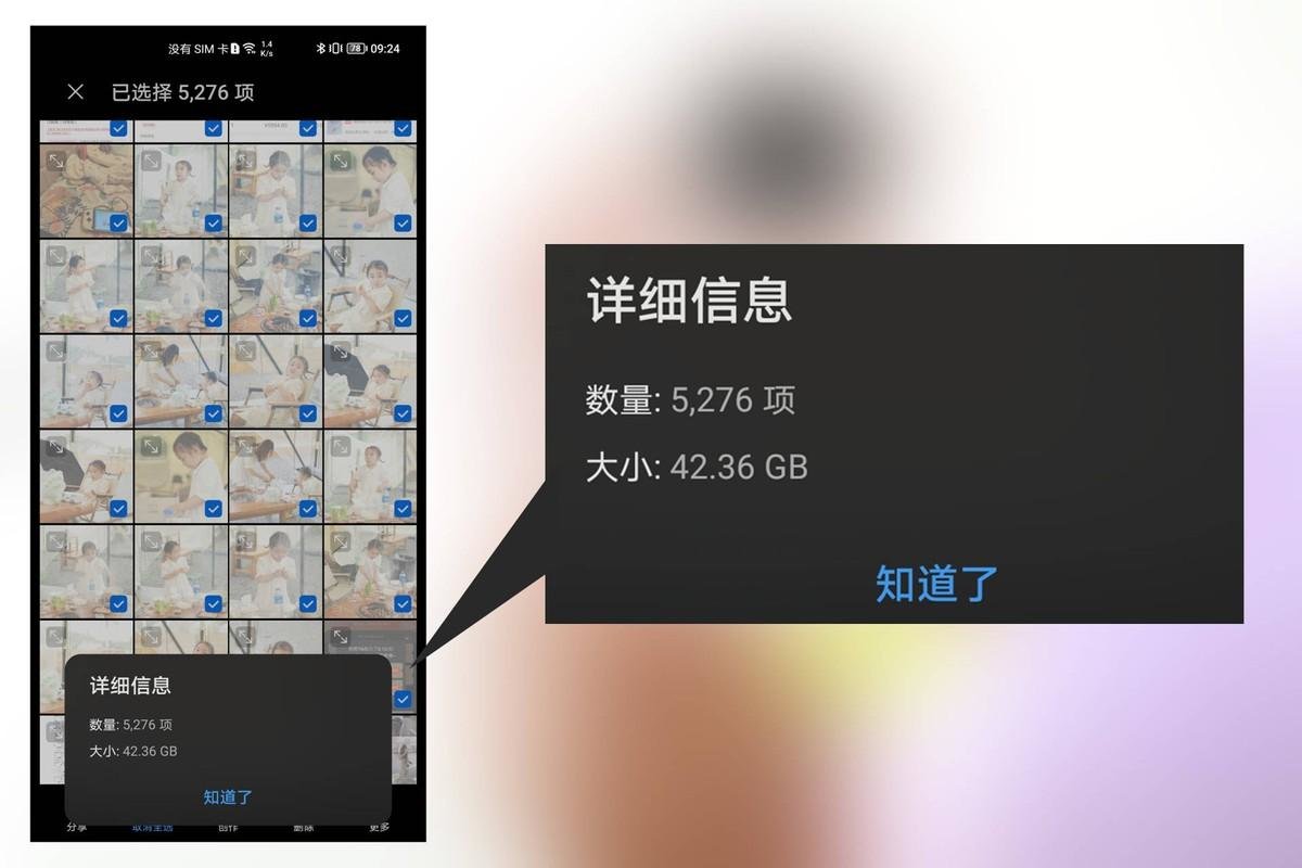 最后再来找一些娃的照片、视频,展示一下实际的传输速度吧!我手机里面现在正好有5000多个照片、视频还没导出,共计42.36GB,我选择好这些照片和视频,直接移动到aigo U393里面去: