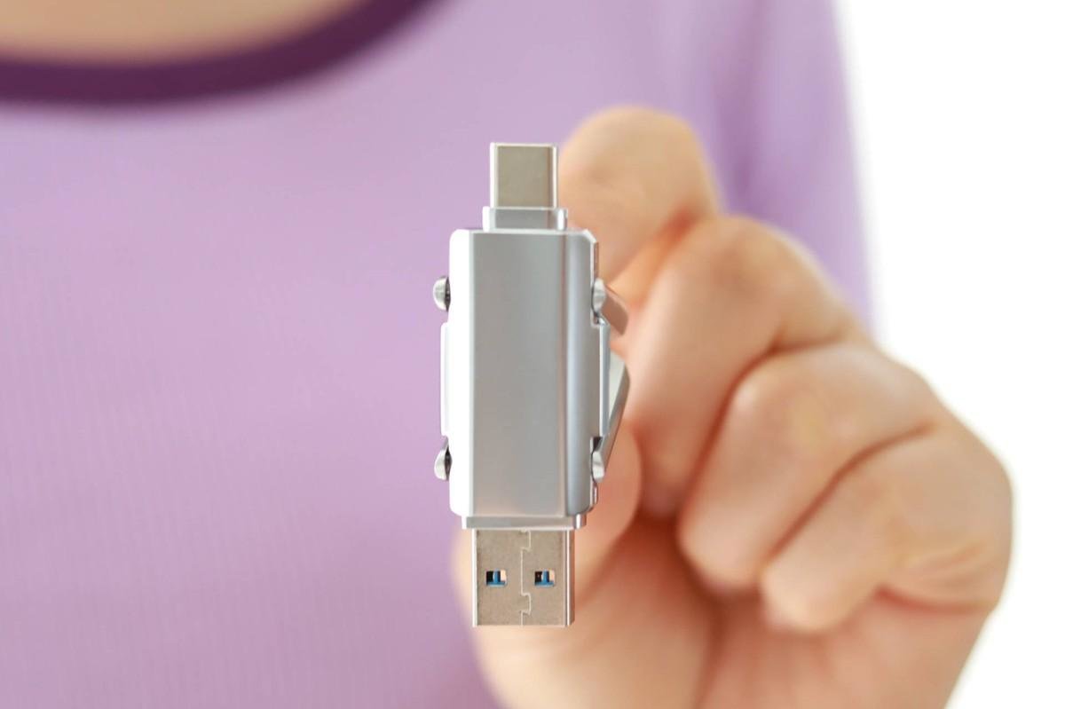这个U盘标志性的地方是:它有两个插头,这是我以前从没见过的。普通U盘不都是一个插头吗?而它除了有一个正常的USB插头外,还多了一个Type-C插头。