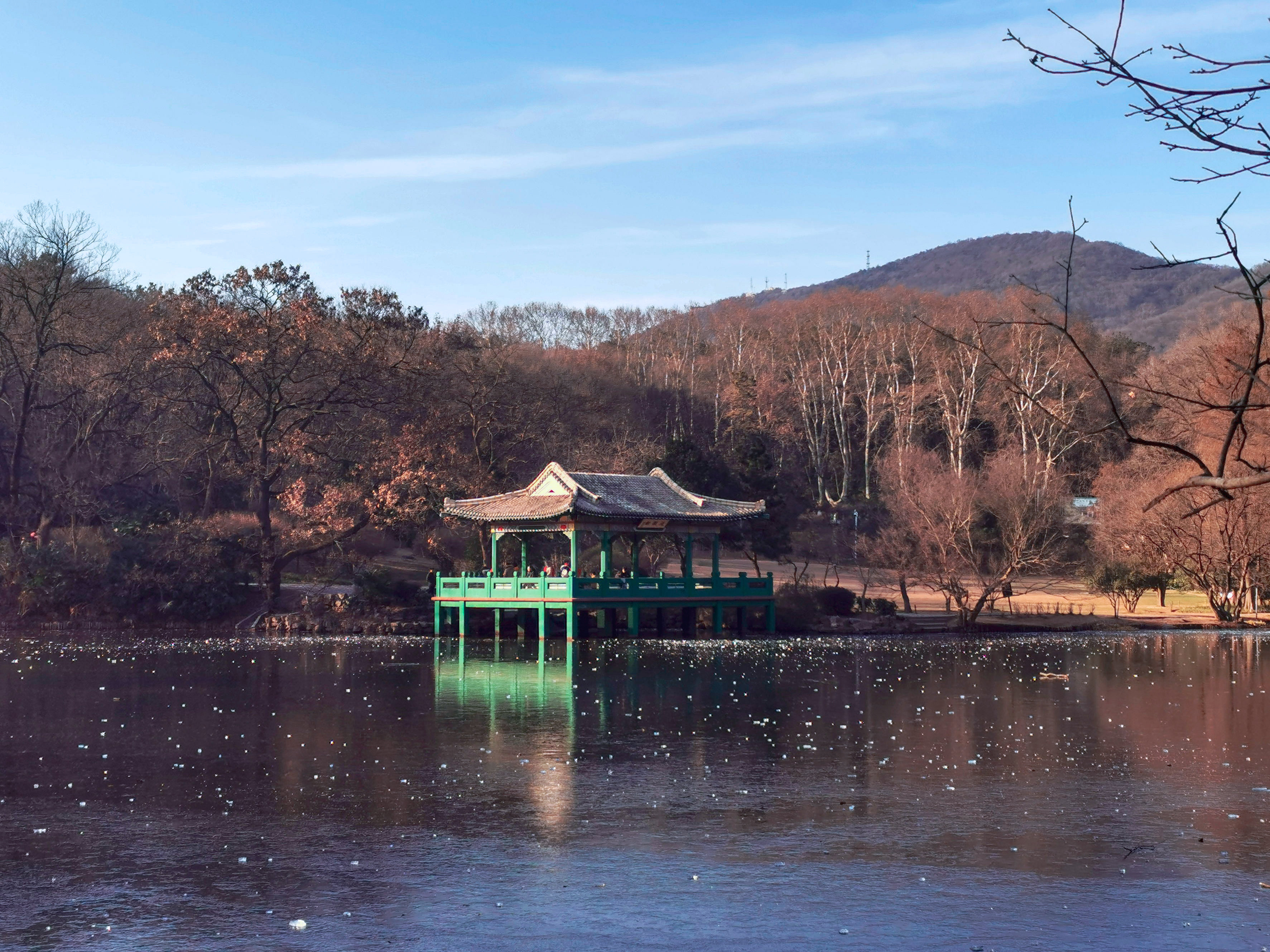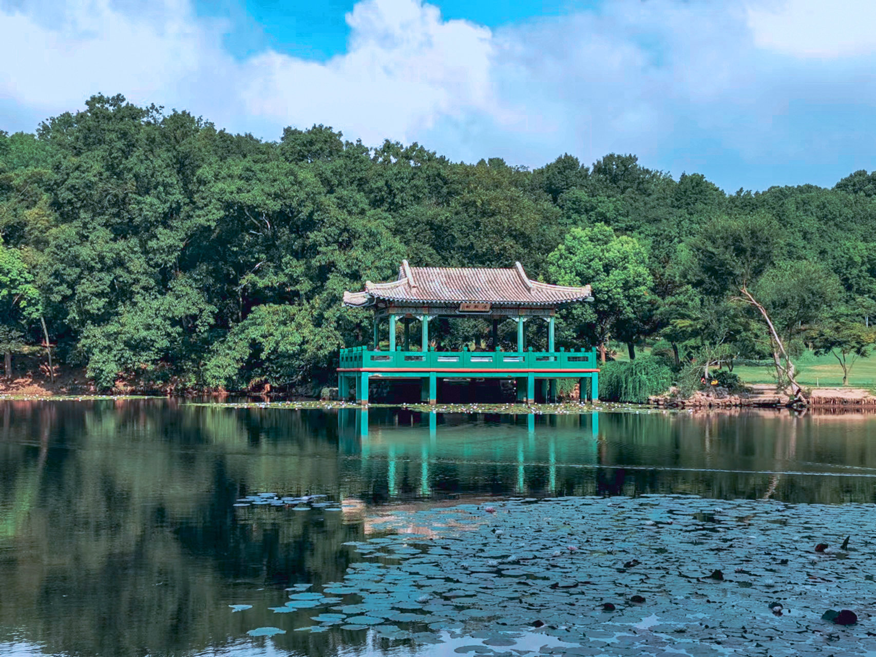 时过境迁,曾经那段战火纷飞的岁月,社会的动荡、人心的焦躁,在风雨中飘摇。一座遮风挡雨的小亭,一方静如止水的碧湖,让摇摆的内心得以安稳。回顾过去,展望未来,宁静得以致远。