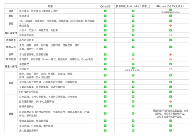 目前,与OPPO Watch3系列连接的手机只要是安卓6系统及以上,除了联动功能以外,其他功能都可以完整支持,体验感与ColorOS系统区别不多。而与iPhone的iOS系统适配度也很高,除了光绘表盘、比亚迪车钥匙、音乐控制、联动功能等一些锦上添花功能不支持外,包括通话、第三方APP下载、NFC&支付,以及运动、健康监测等核心功能也近乎全适配,完全不用担心。所以想要入手OPPO Watch 3系列的果粉以及其他品牌用户们,可以放心冲了。