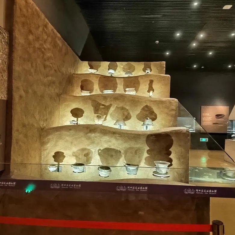 在河姆渡遗址博物馆,展示了长江流域原始人类是如何一步步地制作陶器,从最简单的器皿到在上面雕刻简单的花纹,再到制作用于赏玩陶艺动物。