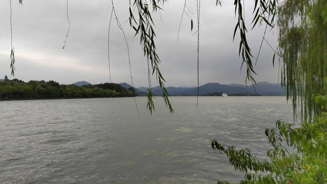 晴天的西湖,湖水碧绿,远山青翠。娇阳与秋光争艳;柳红与花红分色。若逢微雨,秋风泛起,湖水荡漾,即有萧瑟之气;远山层次分明,绵延气伏,是文人笔下的墨染山水。