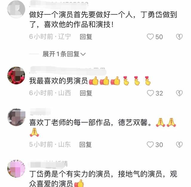 翻看评论区,网友夸赞说:做好一个演员首先要做好一个人,丁勇岱做到了,喜欢他的作品和演技;我最喜欢的男演员;喜欢丁老师的每一部作品,德艺双馨;很喜欢他的演技,真实,耐看。乍一看,网友对丁勇岱为人赞口不绝。
