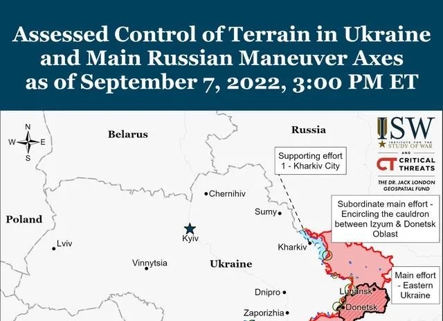 由此更可见俄罗斯现在的捉襟见肘和举步维艰 ——最近乌克兰重点进攻赫尔松,俄罗斯全力防守、尚不可得,而乌克兰突然同时开始猛攻哈尔科夫,俄罗斯则完全不能应对——事实上,俄罗斯最近还在顿巴斯(顿涅斯克和卢甘斯克)也处于守势。