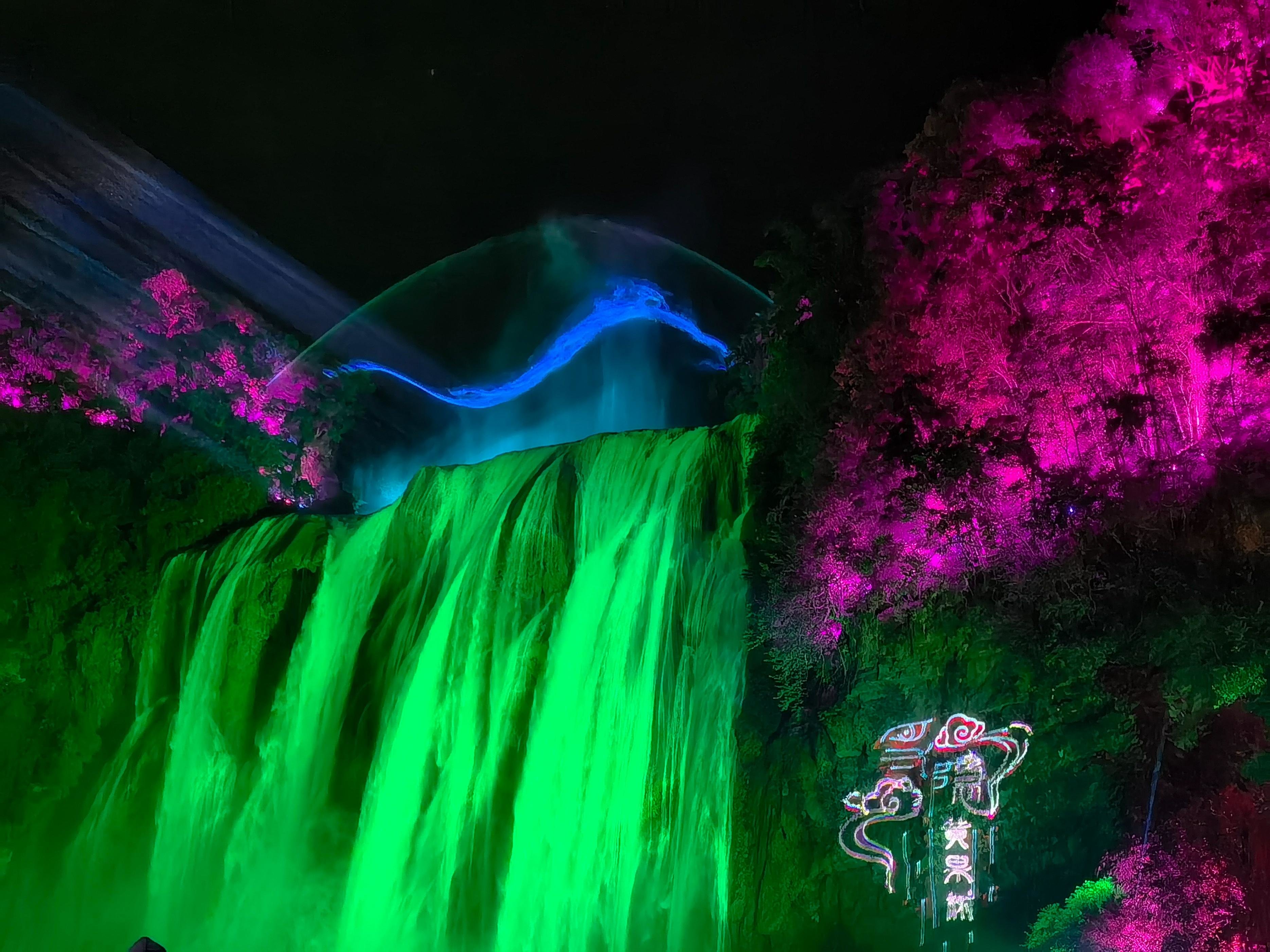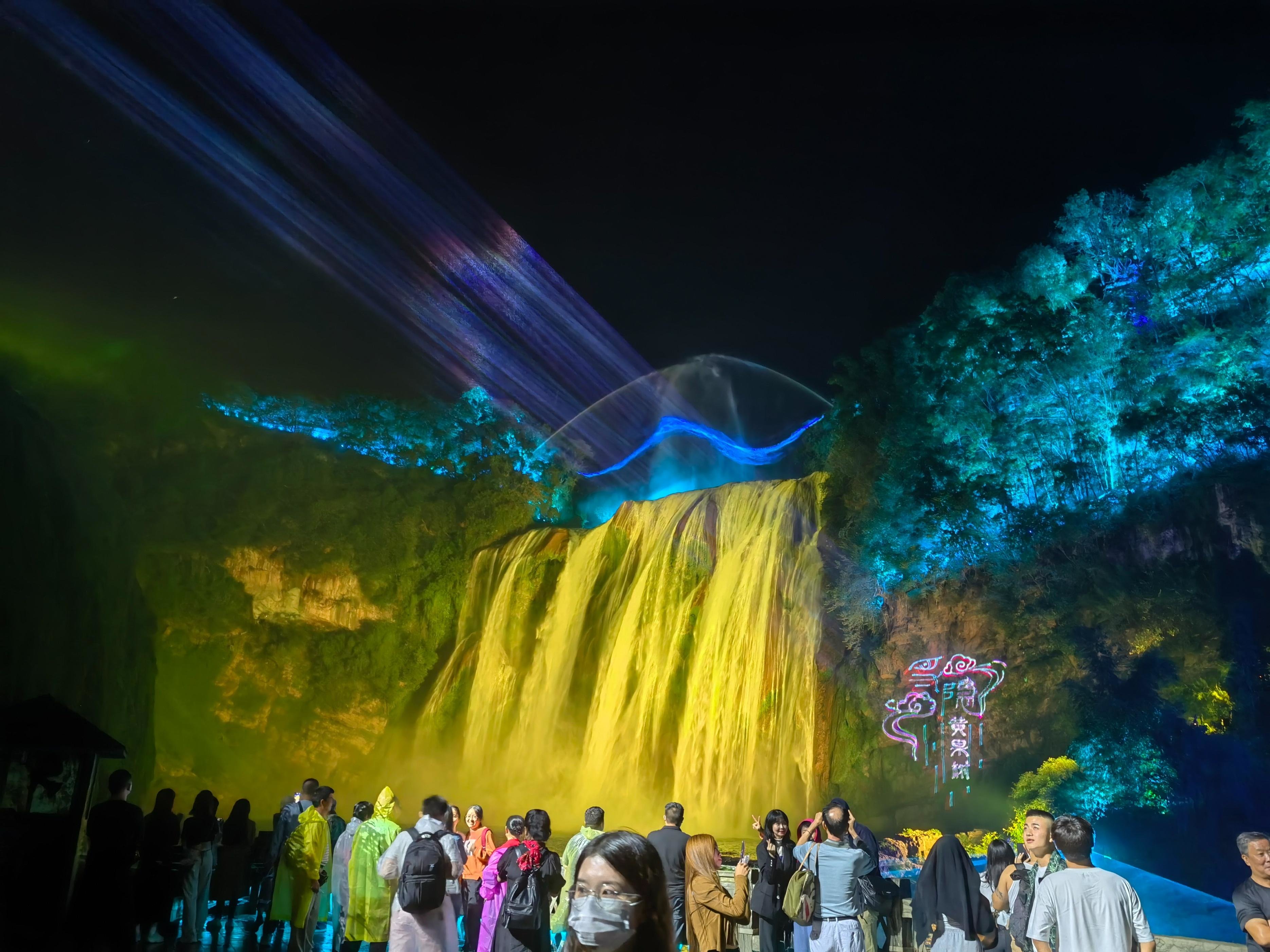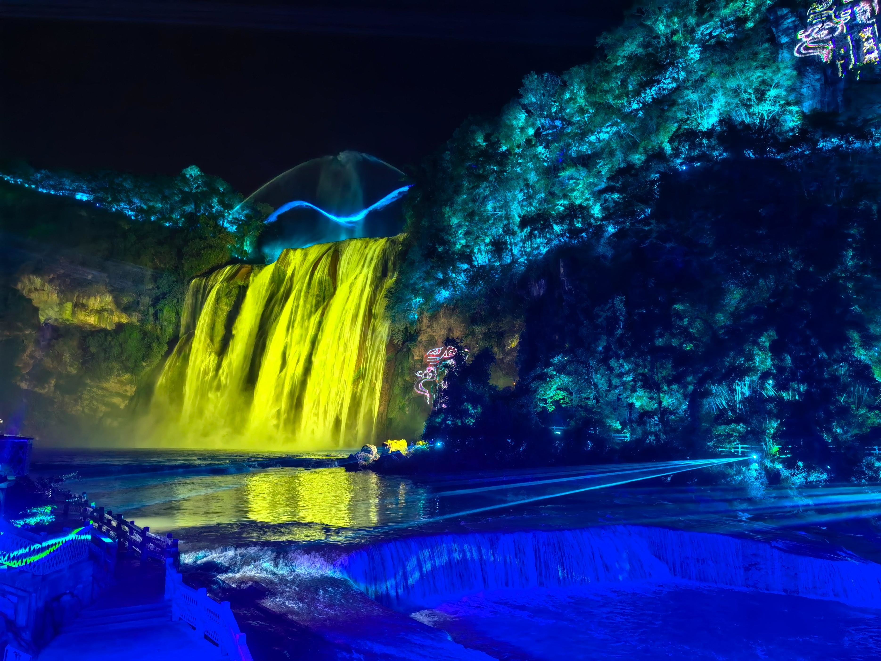 全国知名的旅游景点——黄果树瀑布,推出了夜游黄果树的光影美景。