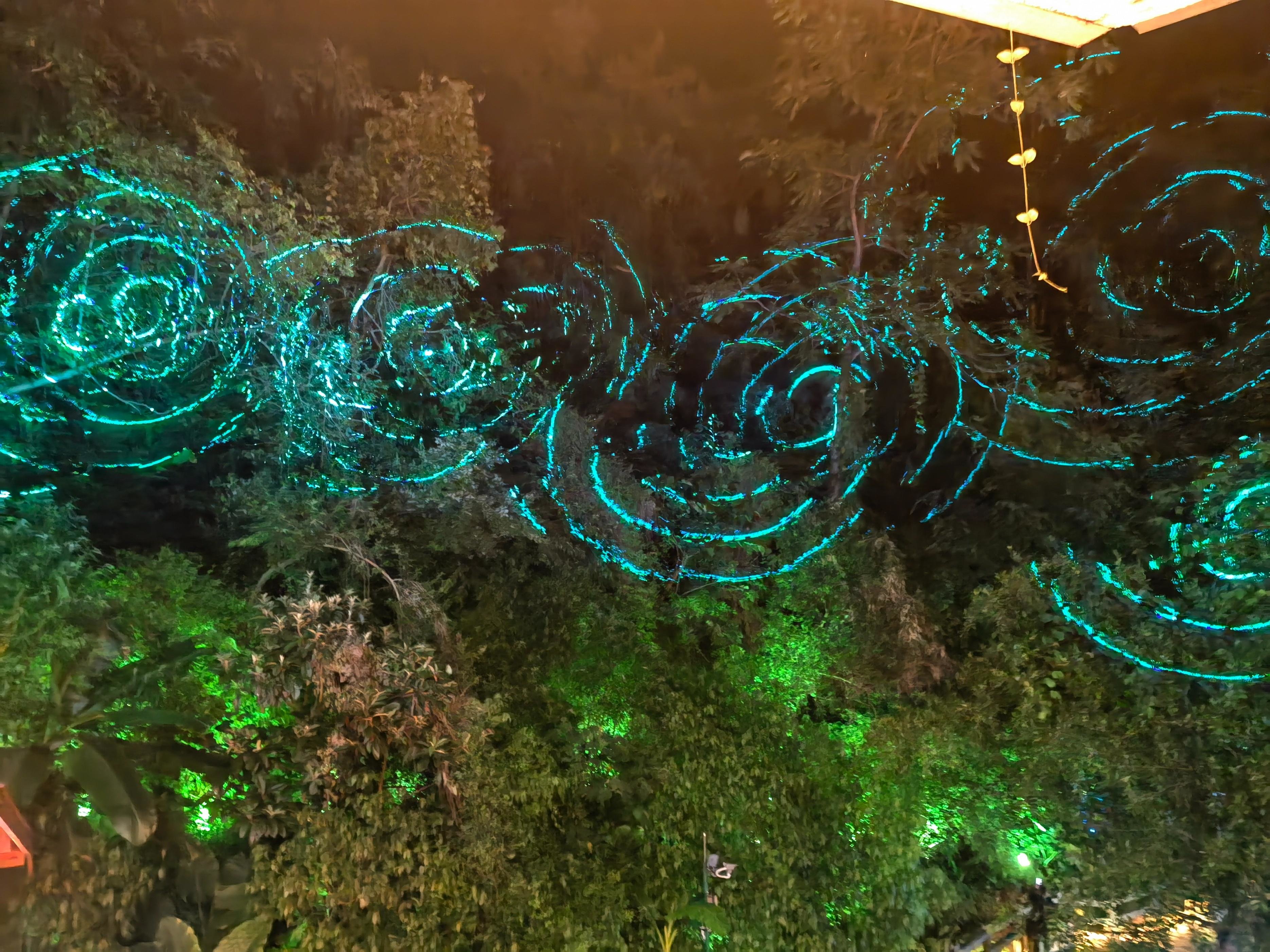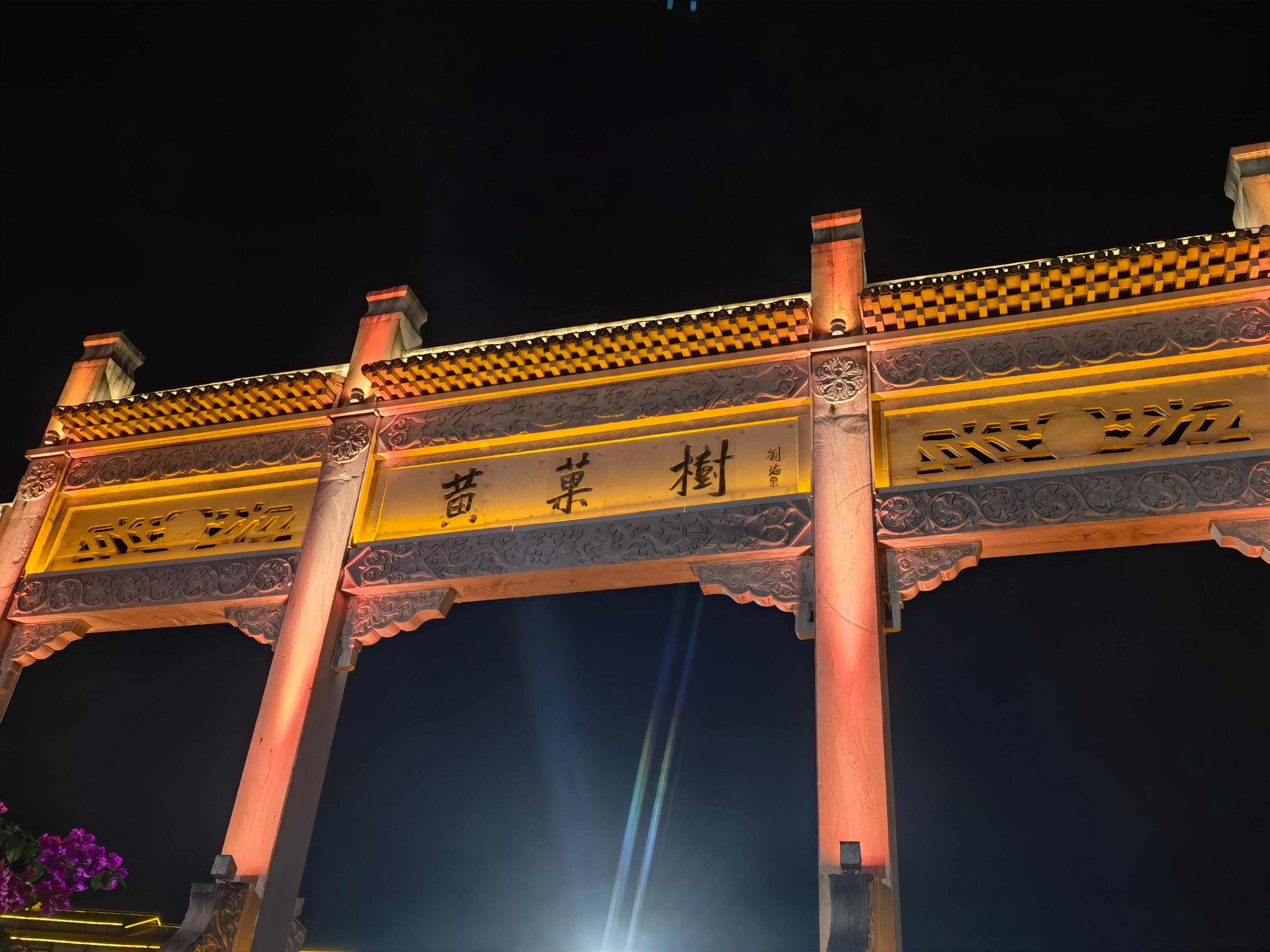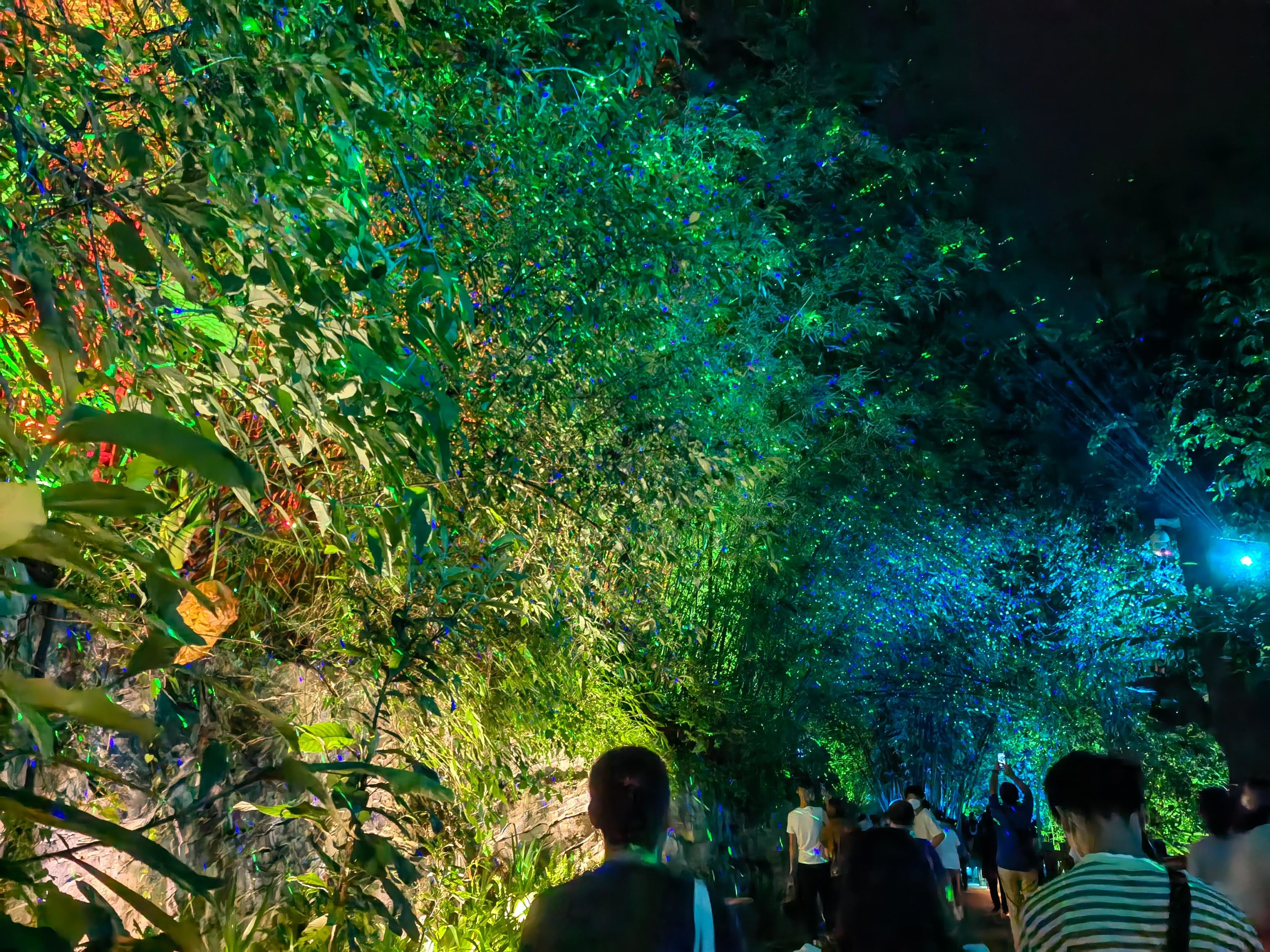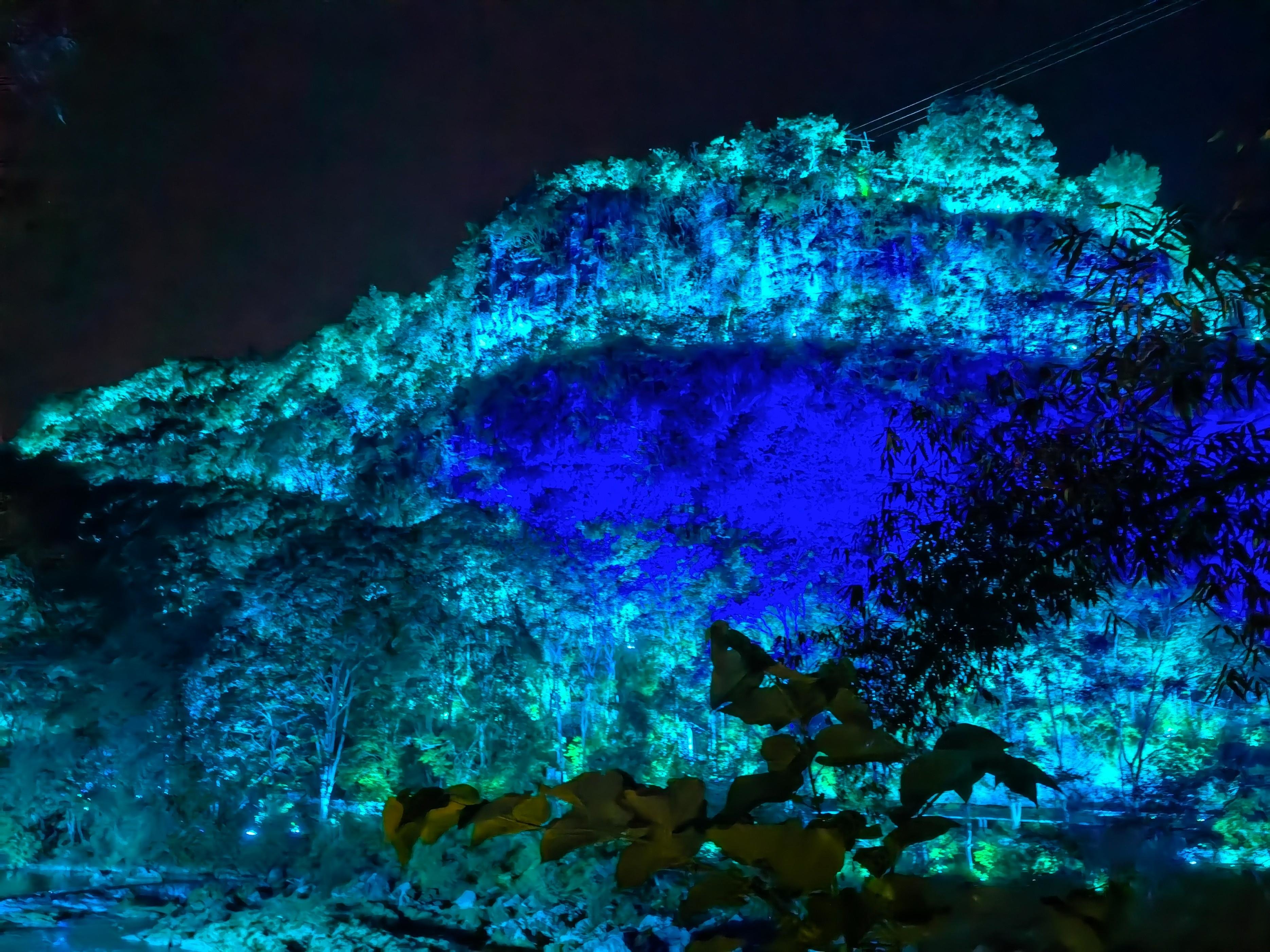 灯光下的山景,显得神秘莫测。