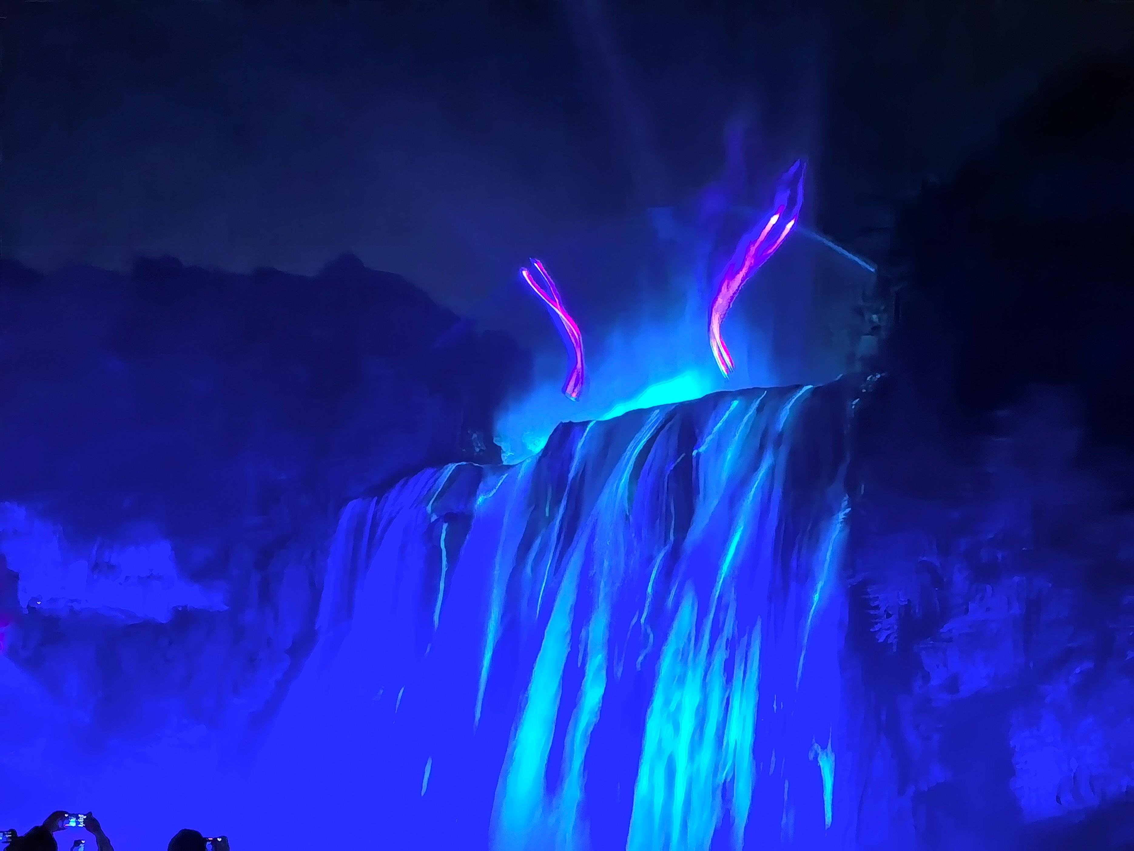 夜间的黄果树瀑布,引起游人一阵阵欢呼,原来夜间的黄果树瀑布如此美丽,令人震撼。