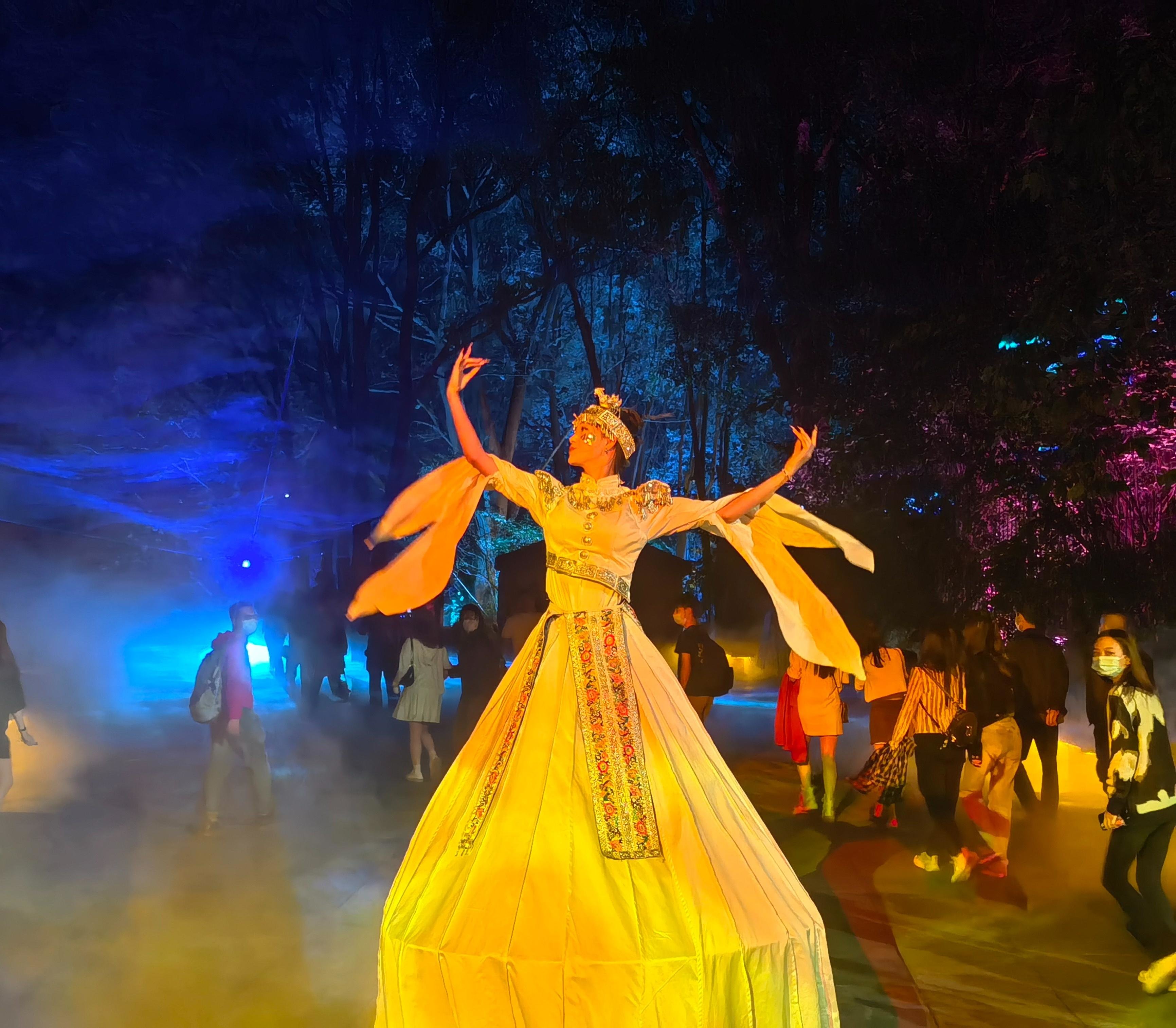 迎入眼帘的的是少数民族歌舞,漂亮的小姐姐脚踩平衡车飞来飞去,还有好闻的香囊赠送。