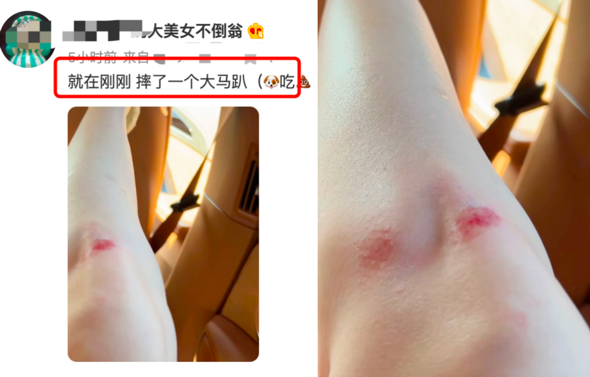 就在当天, 晚晚还发动图表示自己不小心摔跤了,从腿部受伤情况来看应该还蛮疼的,毕竟都多处磕破皮甚至有些鲜血溢出,估计要留疤一段时间。