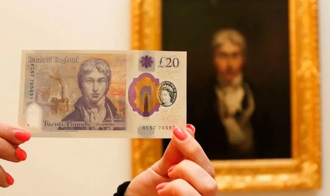 目前,全新的20英镑钞票(约合人民币182元)已于市场开始流通,钞票上英国女王伊丽莎白二世女王自然少不了,而背面则印上了约瑟夫·马洛德·威廉·透纳(Joseph Mallord William Turner)的头像,背景则是他的名作《被拖去解体的战舰无畏号》。