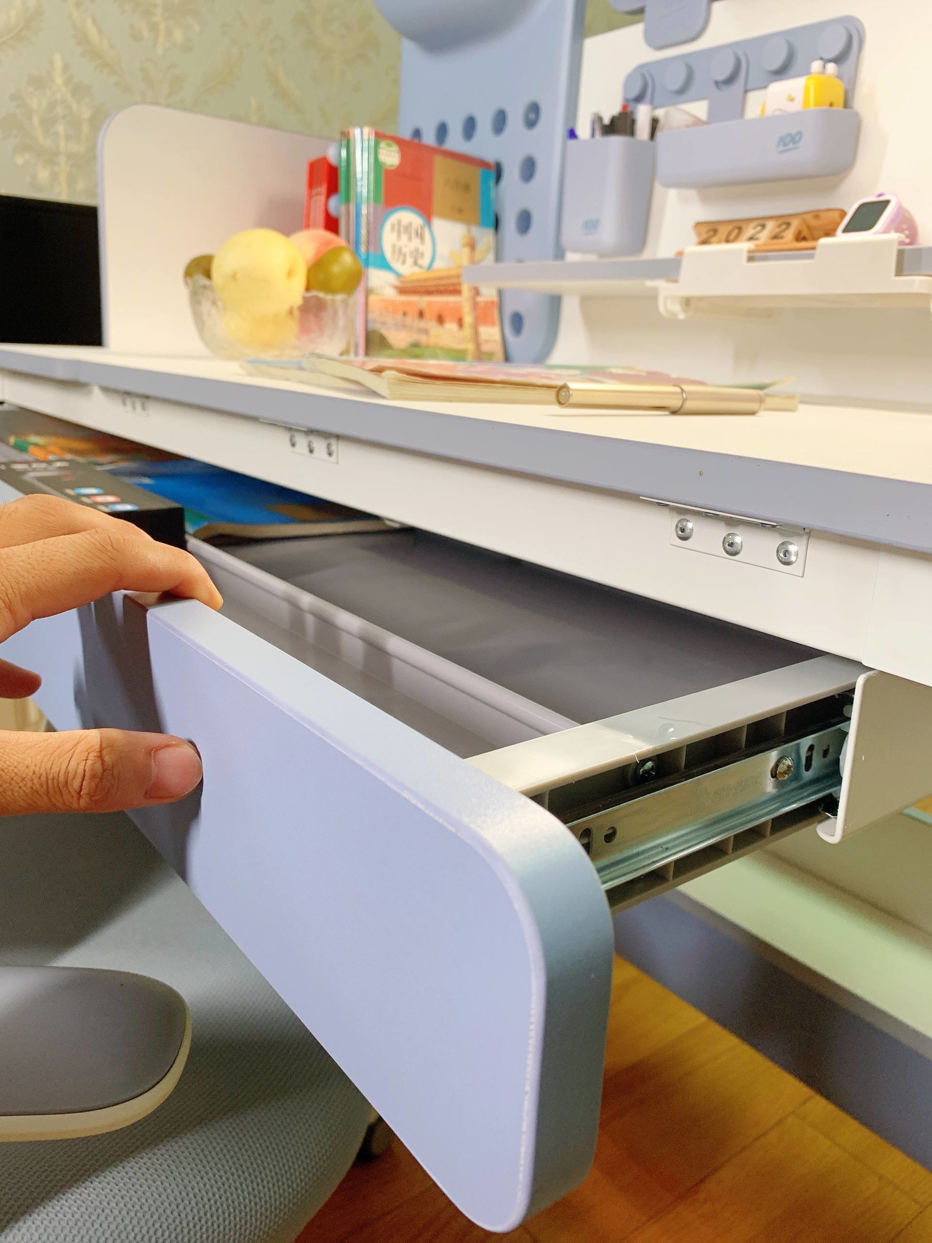 整个桌面使用的是超大空间的设计,拥有不同的收纳模式,能够满足孩子的不同成长阶段的物品收纳需求,同时还营造出了150°的专注学习区,让学习中的孩子更加专注于眼前的学习而不被两侧打扰。