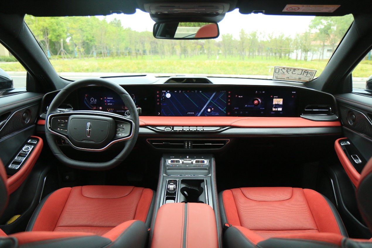 外观的精致感也在车内得到了延续,首先就是非常有科技氛围,纵贯中控台的12.3英寸+27英寸超1.1米的超大尺寸屏幕自然是最吸引眼球的部分,不仅拥有超清的分辨率,内部的功能也很丰富,车机是第四代林肯SYNC+智行互联系统,支持主流的互联在线,FOTA、自然语义的语音识别等功能。还提供了很多第三方APP,满足各种功能需求,同时这块屏幕也支持双区蓝牙功能,可以分屏使用,自由切换屏幕内容,副驾一侧的乘坐者,在行车时可以独自享受影音方面的娱乐需求,同时也不会打扰到驾驶者的操作。