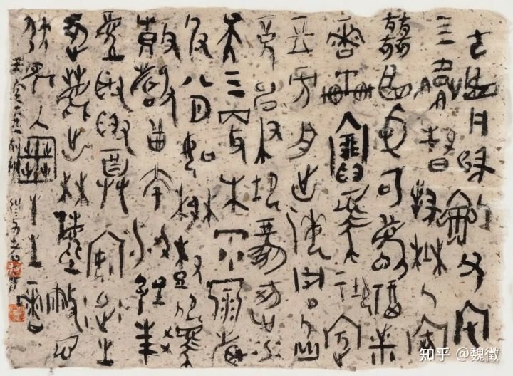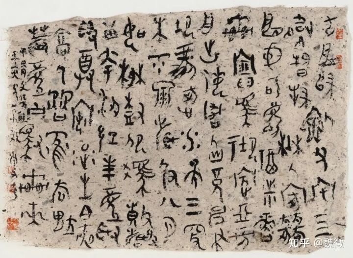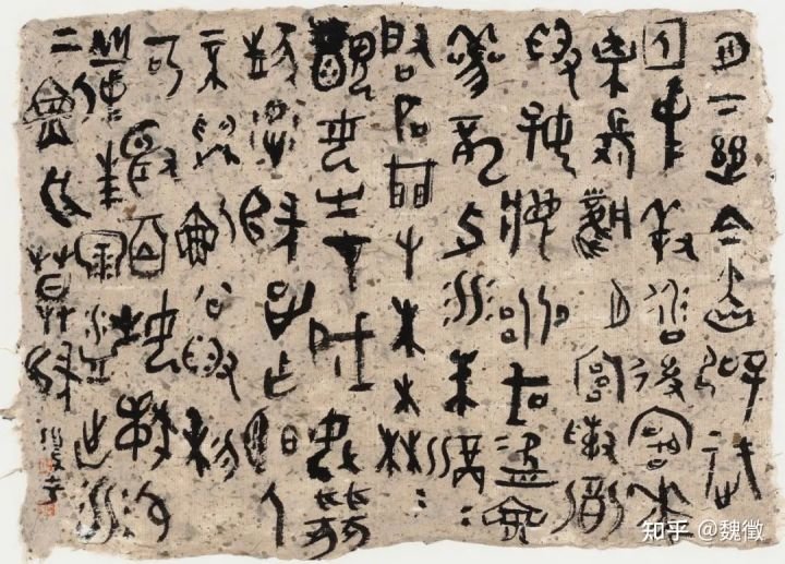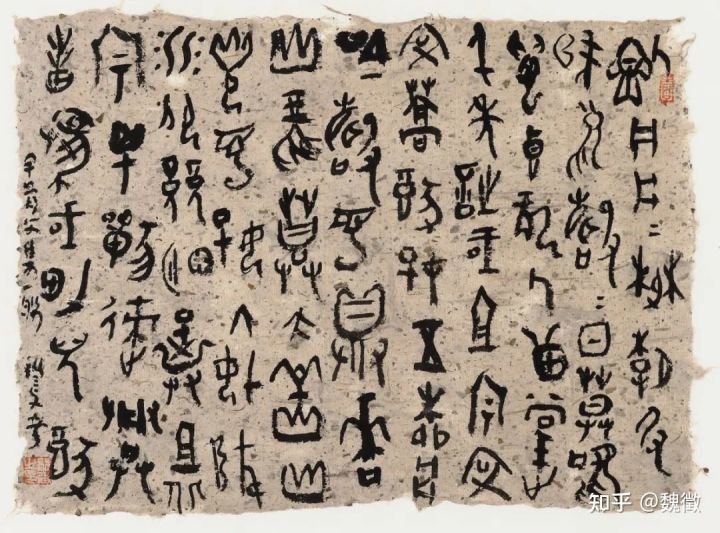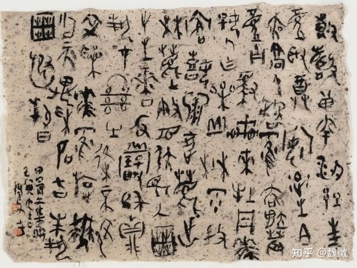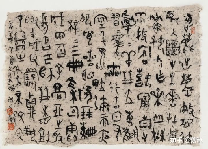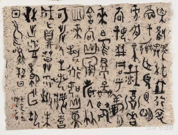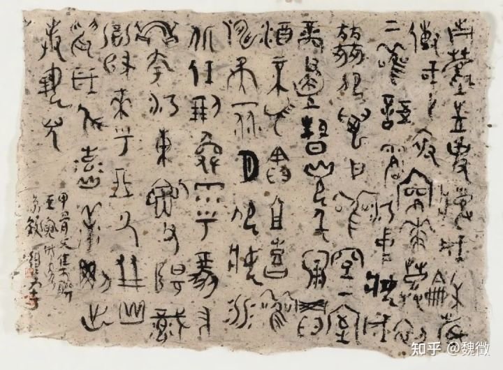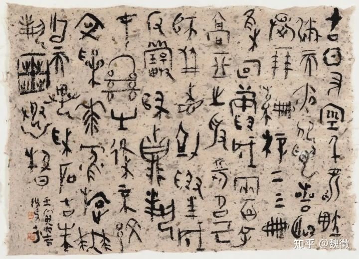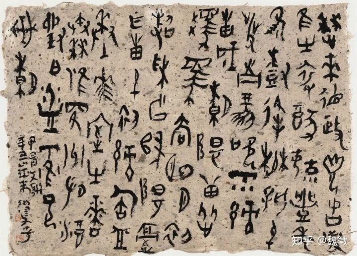 释文:历来德政光古史、唯有远猷育丰年。老树逢春新芽发、南风吹雨绿圃成。朝阳曾从驳马去、明月初照彩云归。阳台作圃芽初绿、萄皿种花室有香。秦淮海处州祭酒、刘伯温鹤邑谢潮。甲骨文集联 辛丑 徵者