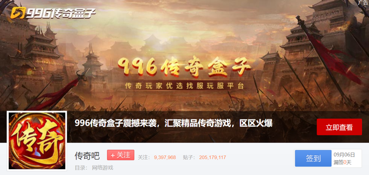 顺便说一句,如果你玩的传奇游戏贴吧里没有看到996传奇盒子这一波广告,那也许说明它还需要继续努力提升自己哦。