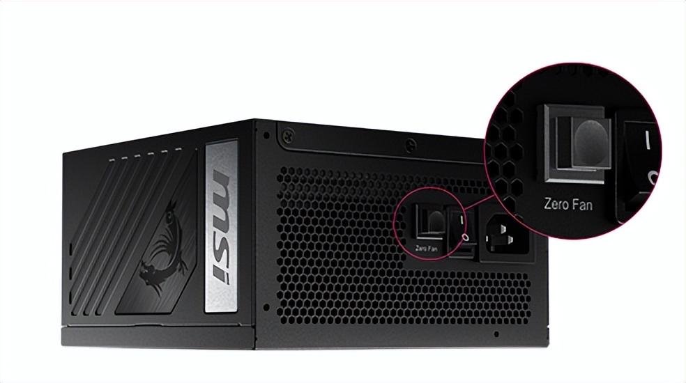 细节方面,电源采用全模组设计,模组线均为扁平化的线材,理线会更加的顺利。在电源的尾部,除了传统的电源插口和开关之外,还有一个风扇运行模式选择按钮。通过按钮,可以开启电源风扇启停功能,让电源风扇在40%负载以下工作时自动停止运作,进一步降低电源的待机噪音,延长电源散热风扇的寿命。