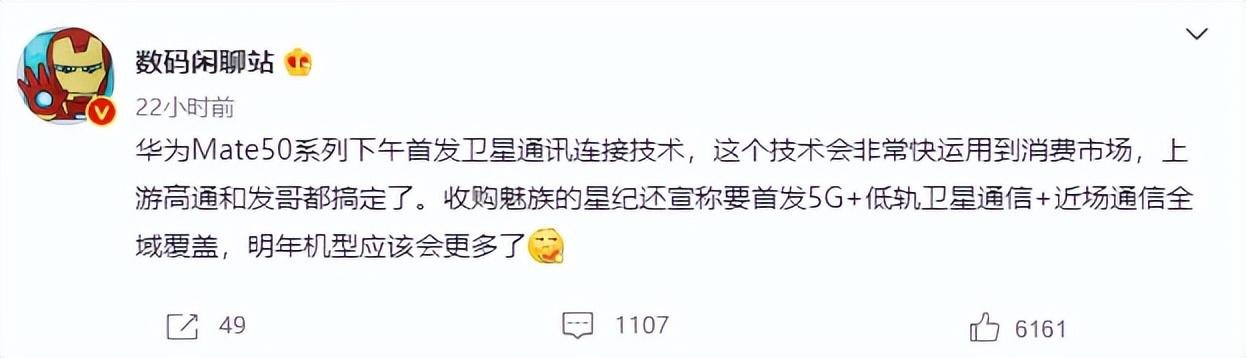值得一提的是,除了创意,魅族在技术方面也是相当领先的。比如在最近热度相当高的卫星通信方面,华为和苹果都分别推出了支持卫星通信的华为 Mate50 系列和 iPhone 14 系列,即使在没有地面网络信号覆盖的环境下,用户也依旧可以通过卫星通信功能与外界保持联系,因此这也让大家关注,魅族会不会也推出支持卫星通信的手机。