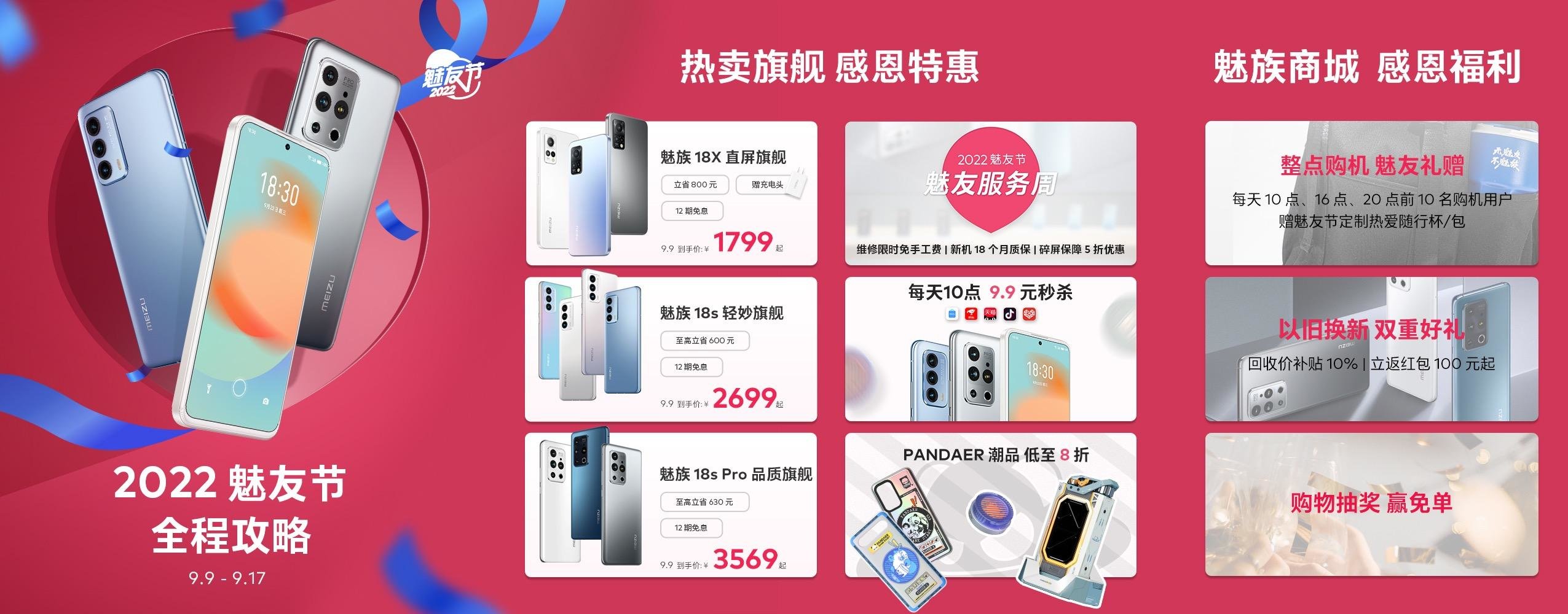 最后值得一提的是,魅友节现在也是正式开启了,不仅 @魅族Care 为魅友们准备了维修服务限时免手工费、新机 18 个月质保、碎屏保障 5 折优惠等福利活动,9 月 9 日 - 9 月 17 日,还有海量商品每天 10 点 9.9 元限量秒杀,以及魅族商城惊喜福利,整点购机限量赠热爱随行杯/包等等,大家不要错过了。