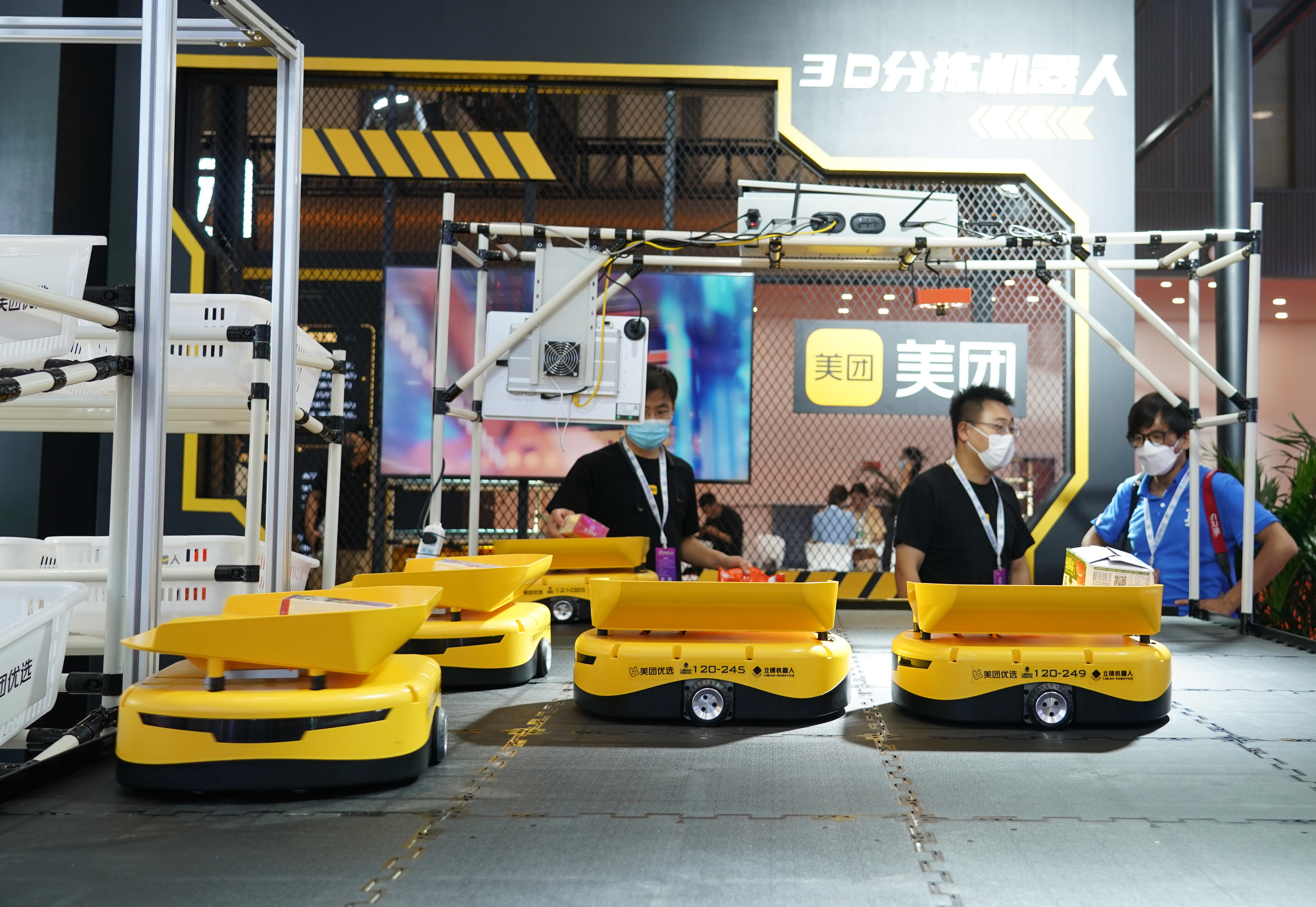这是在2022世界机器人博览会“机器人+物流”展区现场拍摄的3D分拣机器人(8月18日摄)。新华社记者 任超 摄