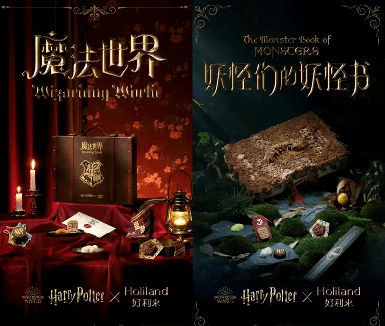 好利来则官宣了与哈利·波特联名合作,推出了“魔法世界”和“妖怪们的妖怪书”两款中秋礼盒。