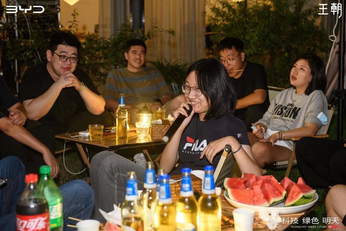 在露营晚宴时刻,嘉宾们自主打分,选出旅途中趣味挑战赛的获胜者。同时尽情放歌、演绎才艺。
