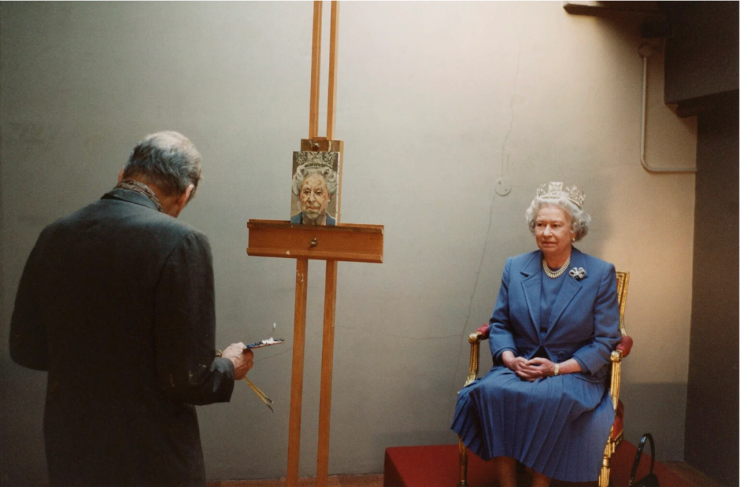 ▲ 伊丽莎白二世亲自去艺术家弗洛伊德工作室为他做模特儿,2001,©️大卫·道森(David Dawson)