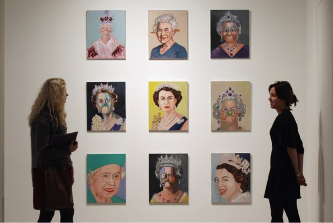 2006年,泰特现代美术馆(Tate Modern)展出了九幅由乔治·康多(George Condo)创作的9幅超现实主义女王肖像引发了英国民众的愤怒。《女王的梦与梦魇》(Dreams and Nightmares of the Queen)系列作品具有一种怪诞的卡通风格,与君主并没有任何相似之处。