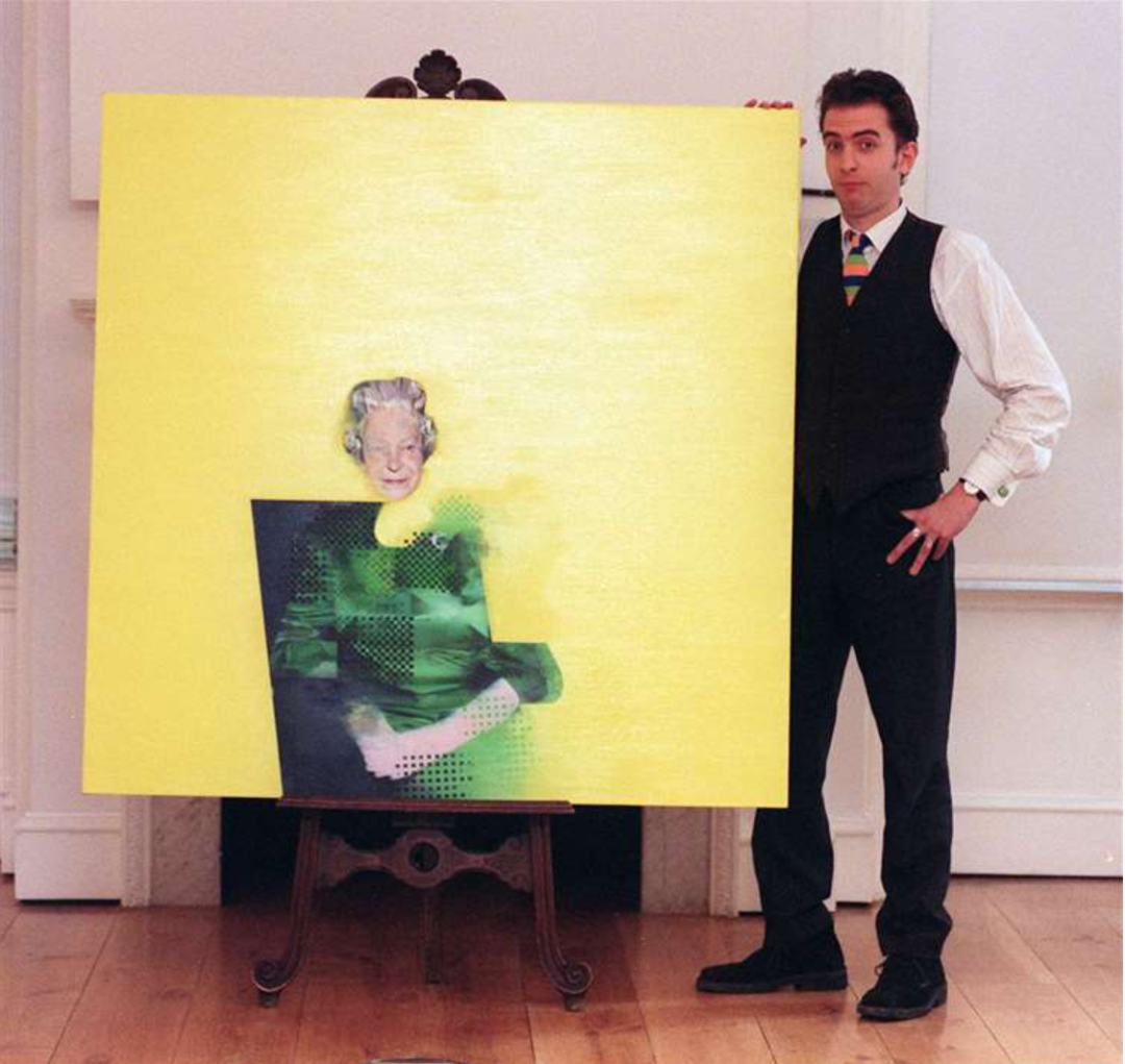▲ 贾斯汀·莫蒂默 (Justin Mortimer) 与他创作的伊丽莎白二世肖像《女王》(The Queen) ,1998